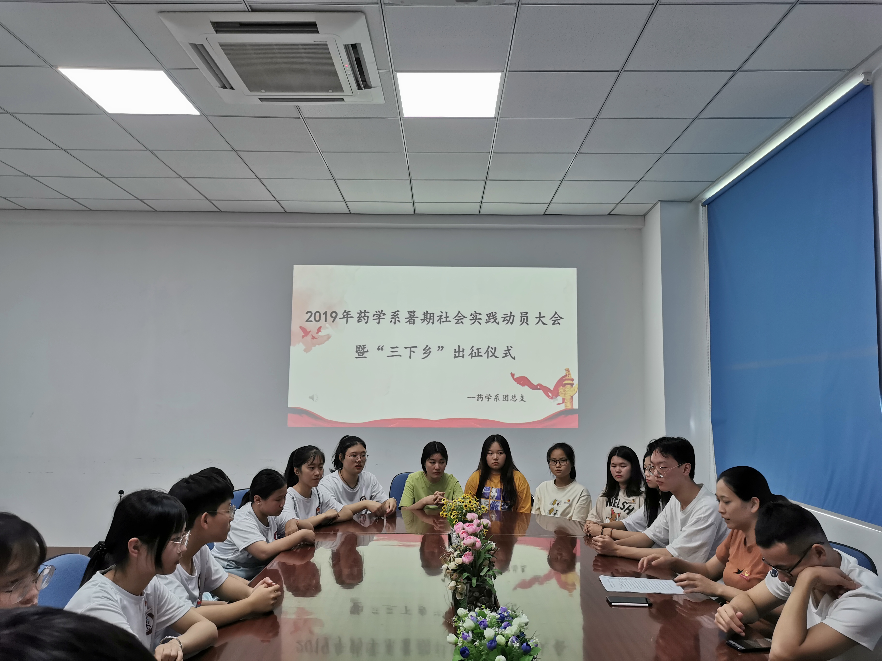 月5日下午,我系于系部207會(huì)議室舉行藥學(xué)系2019年暑期“三下鄉(xiāng)”社會(huì)實(shí)踐出征儀式。出席本次活動(dòng)的人員有黨總支陳潔副書記、團(tuán)總支胡丹副書記和鄭衛(wèi)敏副書記以及參與本次“三下鄉(xiāng)”的學(xué)生志愿者。