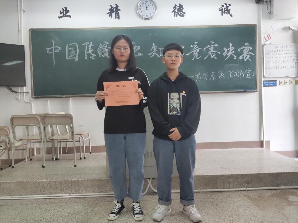 競賽經(jīng)過初賽的選拔,十位選手脫穎而出進(jìn)入決賽。決賽采用游戲互動問答的方式,主要考察選手們對中國優(yōu)秀傳統(tǒng)文化基礎(chǔ)知識掌握情況以及自身頭腦靈敏反應(yīng)程度。問答題型分為選擇題及判斷題。最終,19藥經(jīng)管302班曾淑英同學(xué)榮獲一等獎,19中藥301班劉曉玲同學(xué)榮獲二等獎,16藥學(xué)501班杜欣怡同學(xué)榮獲三等獎。