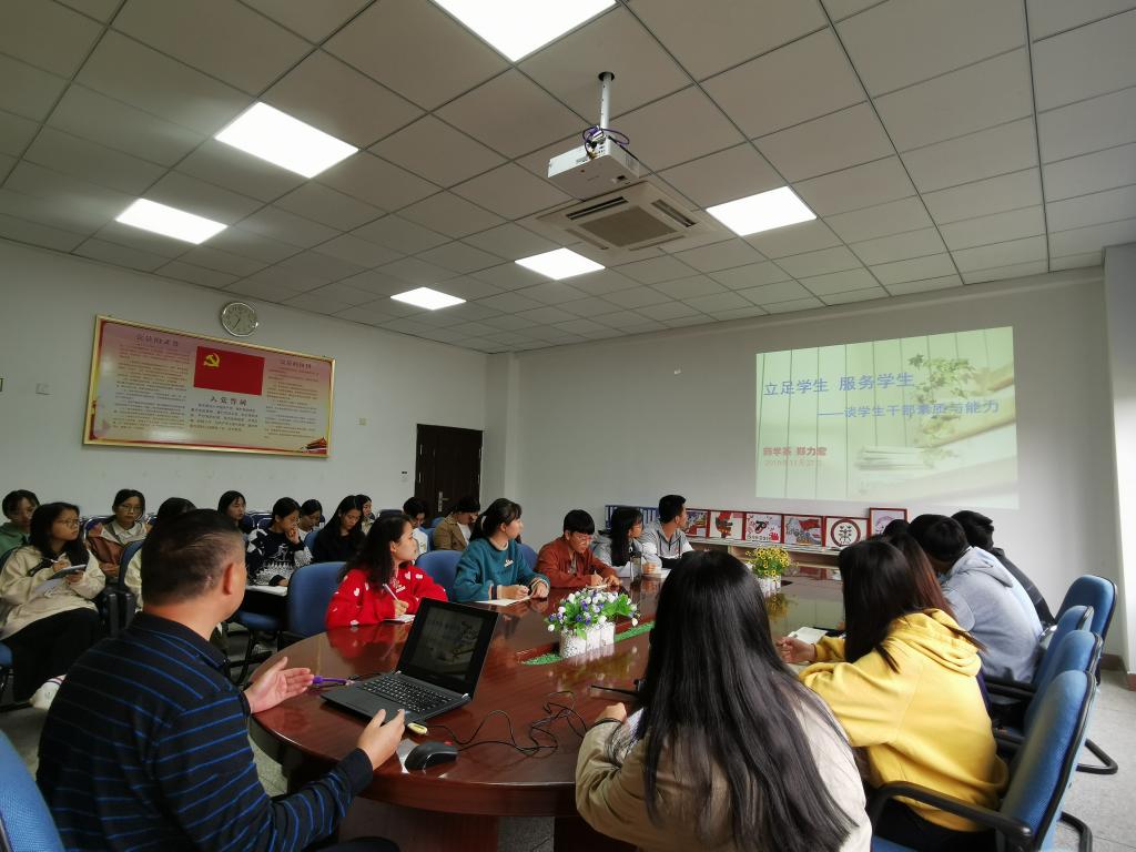 為進(jìn)一步加強(qiáng)我系學(xué)生會干部隊(duì)伍建設(shè),增強(qiáng)隊(duì)伍凝聚力、執(zhí)行力,提升學(xué)生干部自身素質(zhì),2019年11月27日,藥學(xué)系黨總支鄭力宏書記于系部會議室為27名團(tuán)學(xué)干部講授主題為“立足學(xué)生,服務(wù)學(xué)生——學(xué)生干部應(yīng)具備的能力與素質(zhì)”的專題講座。