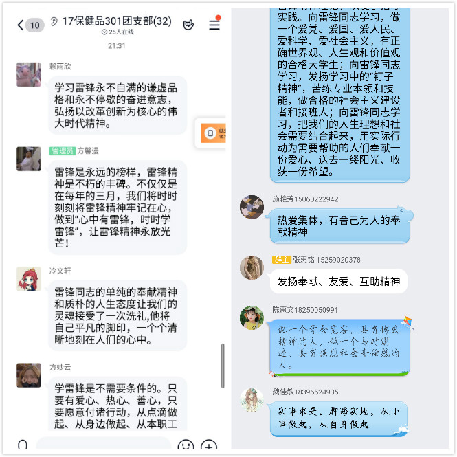 本次活動面向全系團員青年,共計42個團支部參與其中,各團支部圍繞主題,依托QQ、微信等網(wǎng)絡視頻會議平臺,分別以PPT解讀、視頻交流、詩朗誦、觀看雷鋒系列影片、問卷調(diào)查等多種形式展開。其中17藥學302班團支部結(jié)合本次疫情,圍繞雷鋒精神,通過觀看雷鋒電影和紀錄片,帶領(lǐng)同學們加深對雷鋒的理解;19藥經(jīng)管301班則通過PPT解讀的形式和同學們分享雷鋒同志的精神和事跡,引導同學們以實際行動講好新時代雷鋒故事。