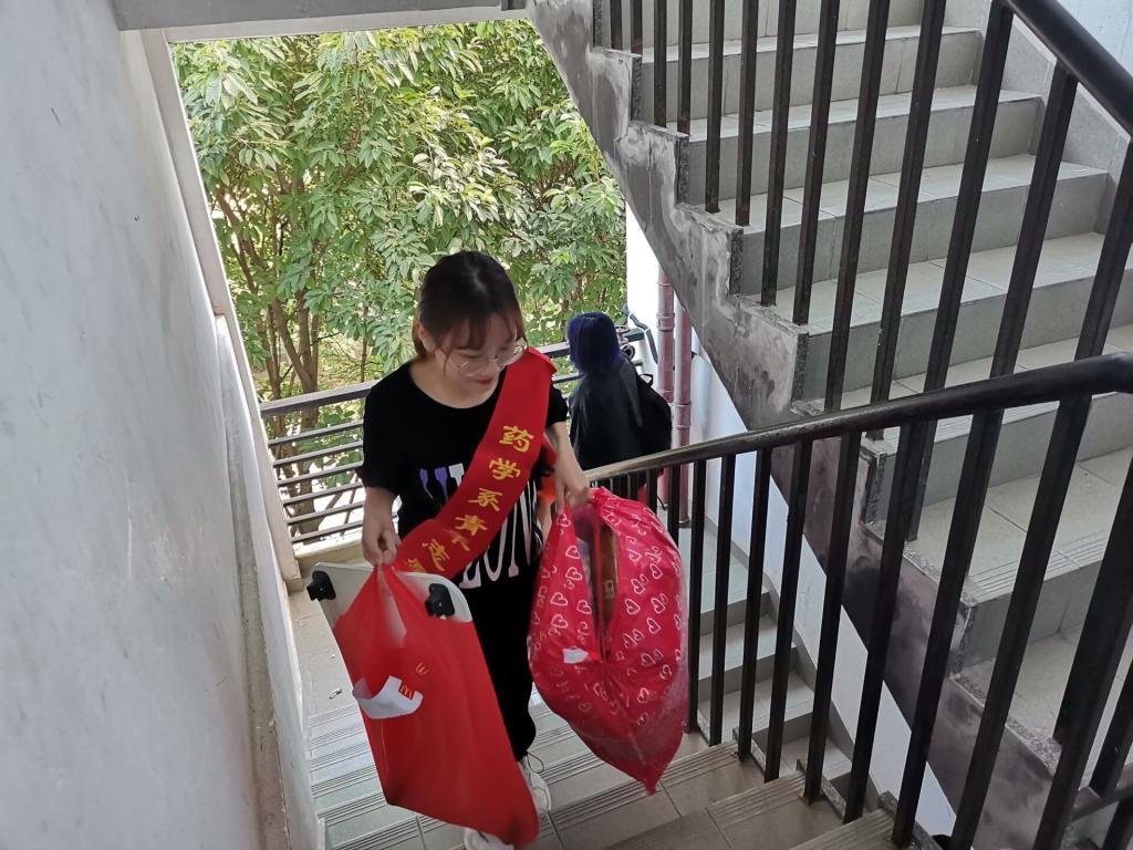 根據(jù)疫情防控的要求,新生家長(zhǎng)及陪同人員不得進(jìn)入校區(qū)內(nèi),藥學(xué)系團(tuán)總支組織了300多名青年志愿者熱情地組織新生有序入場(chǎng)辦理報(bào)到手續(xù)、幫助新生搬運(yùn)行李至宿舍。學(xué)院紀(jì)委游鋒書(shū)記、藥學(xué)系黨總支鄭力宏書(shū)記、肖健副主任、李泳寧副主任、黨總支賴文金副書(shū)記和新生班輔導(dǎo)員一同走訪迎新點(diǎn)和2020級(jí)新生宿舍,他們?cè)敿?xì)詢問(wèn)新生報(bào)到情況,并與新生親切交談,為新生介紹學(xué)校和系部情況,耐心地解答新生們提出的各種疑問(wèn),勉勵(lì)同學(xué)們盡快轉(zhuǎn)變角色,以嶄新的面貌投入到大學(xué)生活當(dāng)中,努力做到學(xué)有所成、學(xué)有所獲。