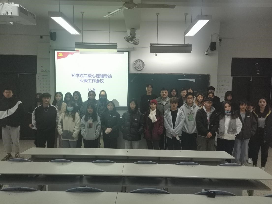12月25日下午6時,藥學(xué)院二級心理輔導(dǎo)站心委工作會議為冬季心理健康周活動拉開序幕。會議上,二級心理輔導(dǎo)站負(fù)責(zé)人葉劍老師就健康周期間的工作部署、心委日常工作職責(zé)等方面展開。會議的最后,葉劍老師用班級心理工作的組織員、心理健康教育的宣傳員、學(xué)生心理晴雨的觀察員這三個稱謂,定義了心理委員的崗位職責(zé),并希望大家要用心做好這個工作。