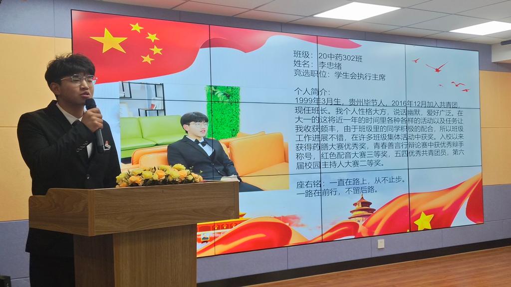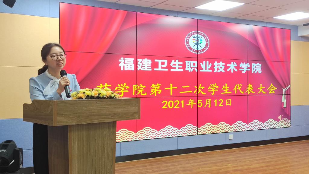 校學(xué)生會執(zhí)行主席蔡小華同學(xué)致詞,充分肯定了藥學(xué)院學(xué)生會取得的優(yōu)異成績,并勉勵與會代表堅定信念,積極提升自我,為建設(shè)和諧校園貢獻(xiàn)自己的青春力量。