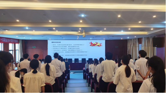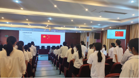主持人宣布藥學院第二十四期業(yè)余分黨校開班典禮正式開始,全體起立,奏唱國歌。