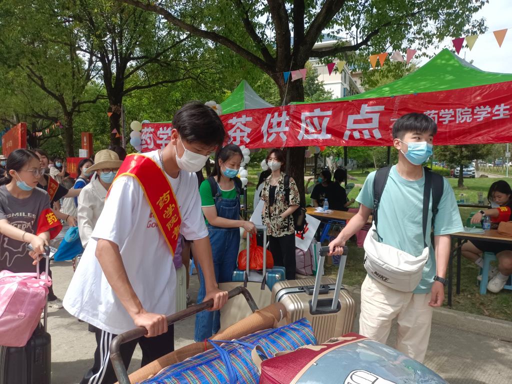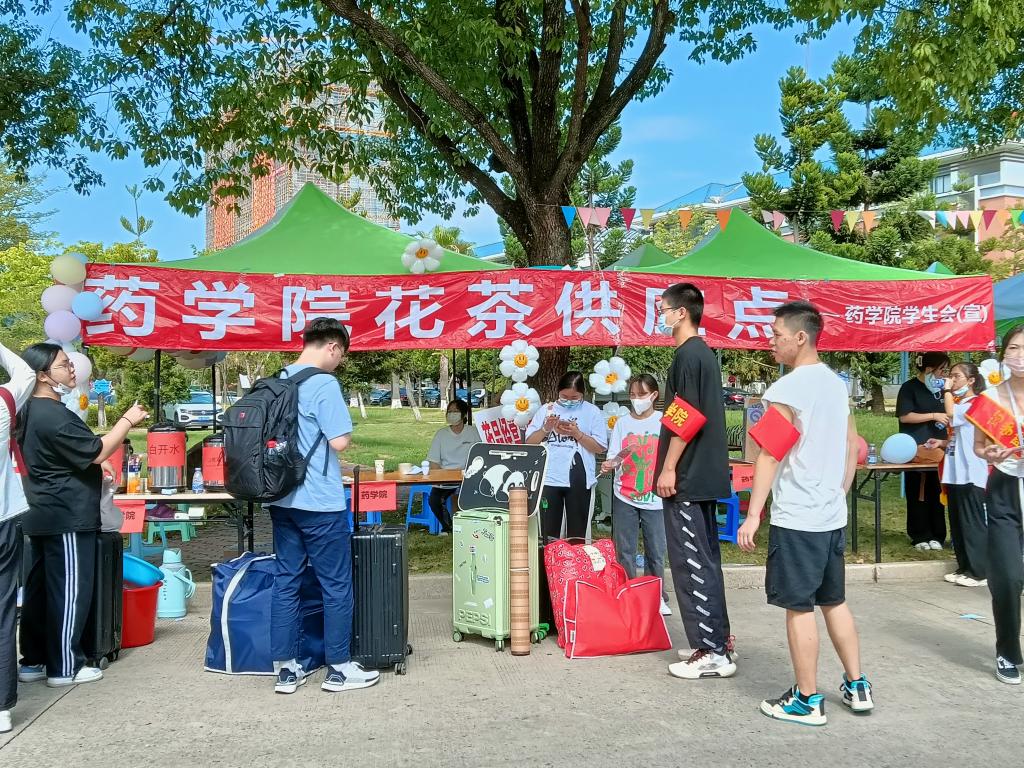 早上7時,藥學(xué)院志愿“精神小伙”們便開啟了一天的迎新工作。中午時分,炙陽當(dāng)空,汗水縈繞在青年的眉間,志愿者們的熱情“輸出”,讓新同學(xué)感受“學(xué)長”、“學(xué)姐”的藥學(xué)友力。