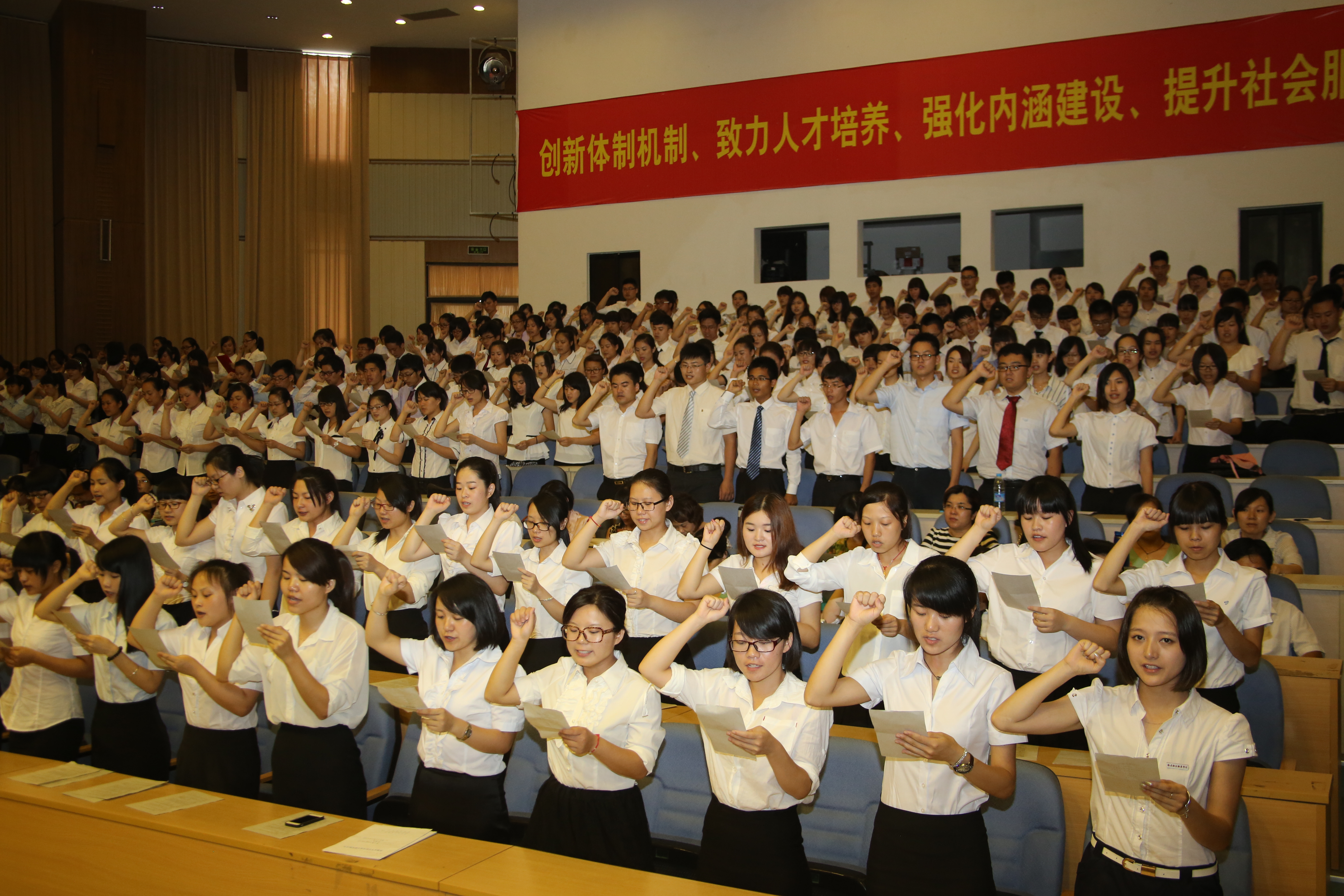 頒發(fā)畢業(yè)證書(shū)后,全體畢業(yè)生在陳瑜老師的帶領(lǐng)下齊聲宣讀《醫(yī)學(xué)生誓詞》,健康所系、性命相托、淡泊超然、無(wú)私奉獻(xiàn)、精于醫(yī)術(shù)、誠(chéng)于醫(yī)德、將畢生精力奉獻(xiàn)給醫(yī)療衛(wèi)生事業(yè)。隨后,畢業(yè)生代表溫輝輝同學(xué)和教師代表李泳寧老師分別發(fā)言。