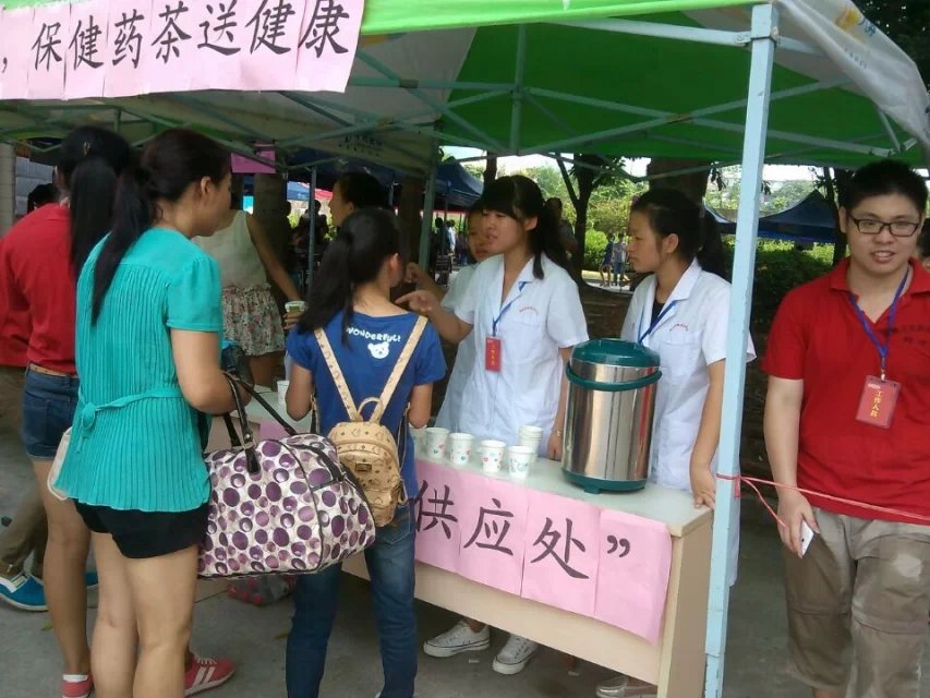 展品一一陳列在展臺上,并提供免費(fèi)品嘗服務(wù),使新生們及其家長們在一飽眼福的同時(shí)大飽口福。與此同時(shí),展示區(qū)都配有專業(yè)的工作人員為大家做關(guān)于“白露養(yǎng)生”方面的講解,經(jīng)過耐心細(xì)致的講解后,學(xué)生與家長們紛紛上前品茶,并不時(shí)詢問講解人員這其中的原理,對藥茶有著極大的興趣??v觀整場活動,展示區(qū)前的同學(xué)與家長們一直絡(luò)繹不絕。三種藥茶參觀實(shí)踐下來,同學(xué)與家長們的好奇心與求知心都得到了極大的滿足。