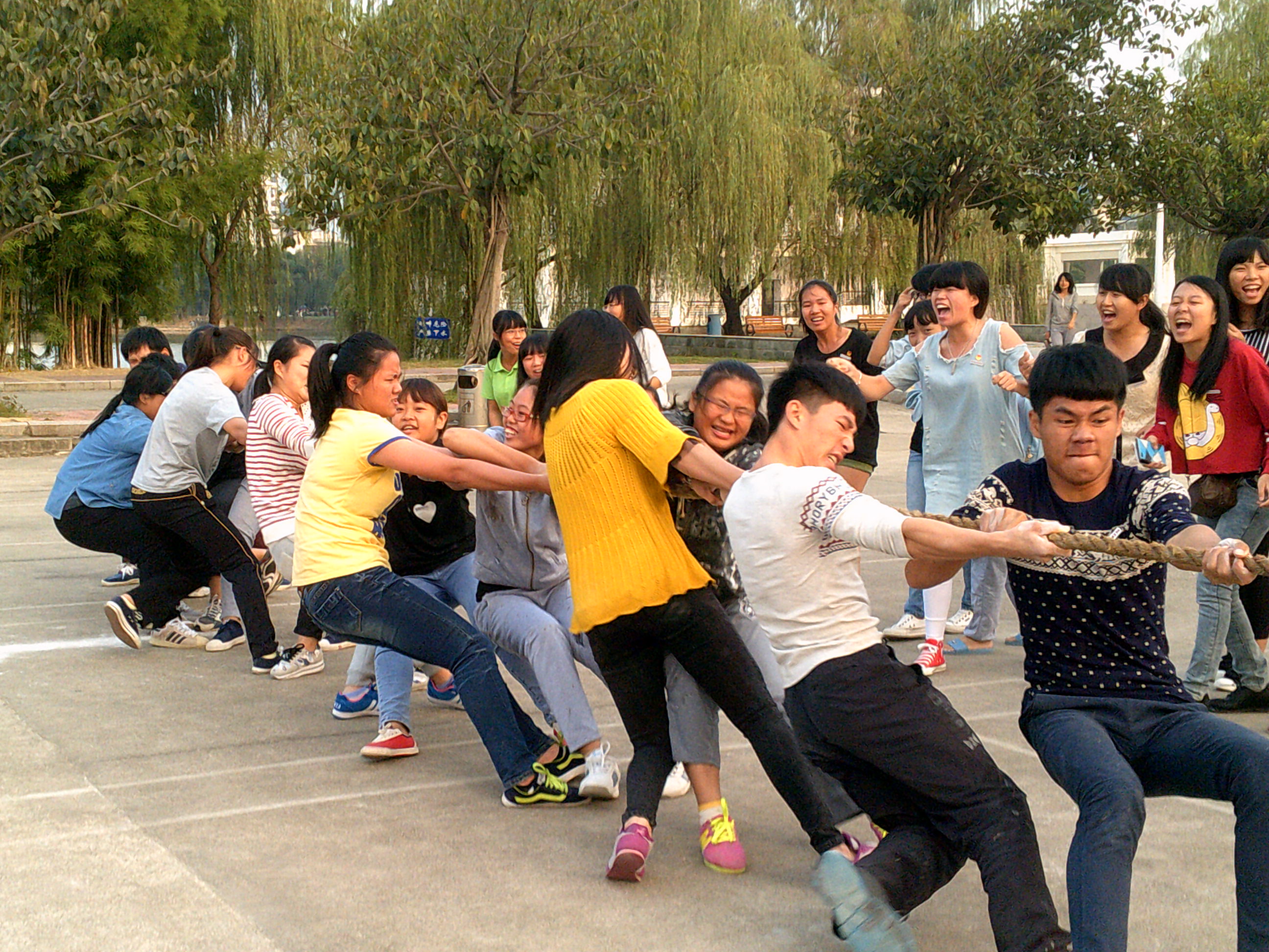 10月14日,決賽正式開(kāi)始。各參賽隊(duì)伍為了集體的榮譽(yù),鼓足干勁,使出了全身的力氣,在雙方實(shí)力相當(dāng)時(shí),選手們抱著不到最后一刻絕不放手的信念,使得比賽一度進(jìn)入白熱化。場(chǎng)上啦啦隊(duì)的加油吶喊聲也不斷高漲,最終14藥學(xué)306力壓群雄,獲得本次比賽的冠軍。這一場(chǎng)激烈而又振奮人心的拔河比賽在大家的歡呼聲中圓滿結(jié)束。