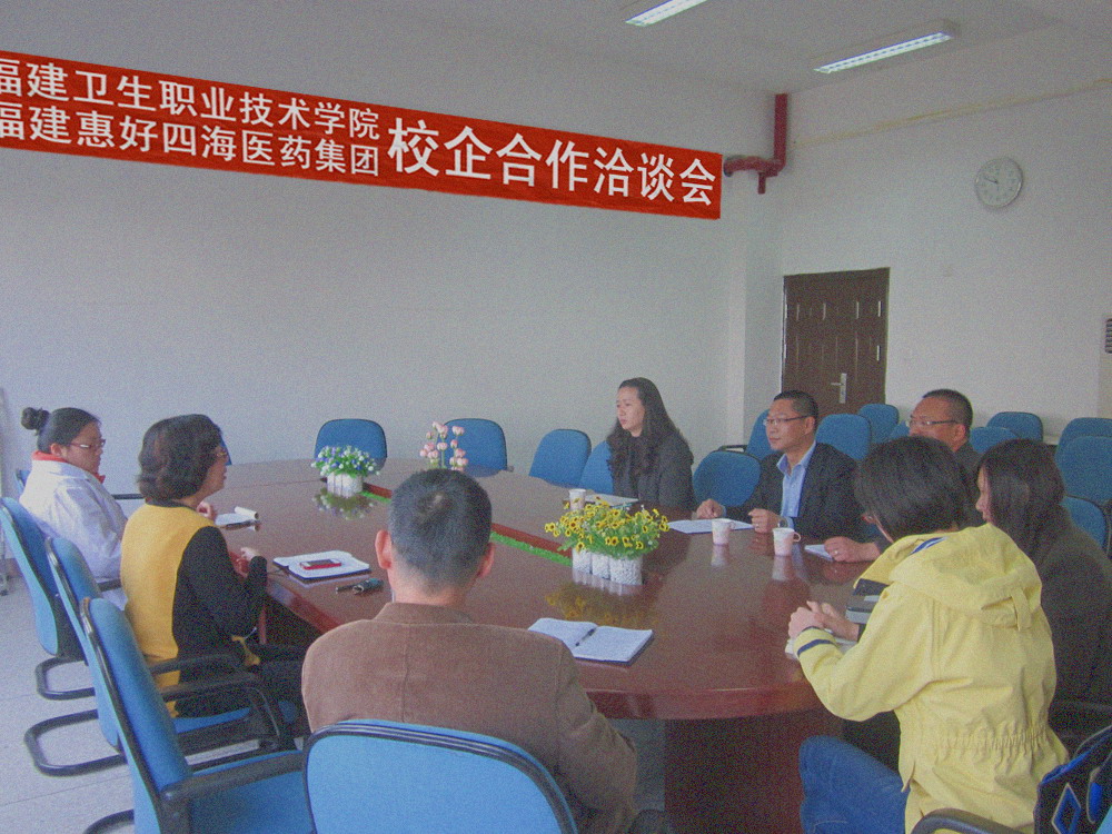 3月21日上午,惠好企業(yè)拓展部經(jīng)理陳容、陳錫榕一行3人來藥學(xué)系洽談繼續(xù)合作事宜。藥學(xué)系倪峰主任、肖健副主任、醫(yī)務(wù)室聶小鳳老師、惠好企業(yè)訂單班吳曉珊老師參加了洽談會(huì)。