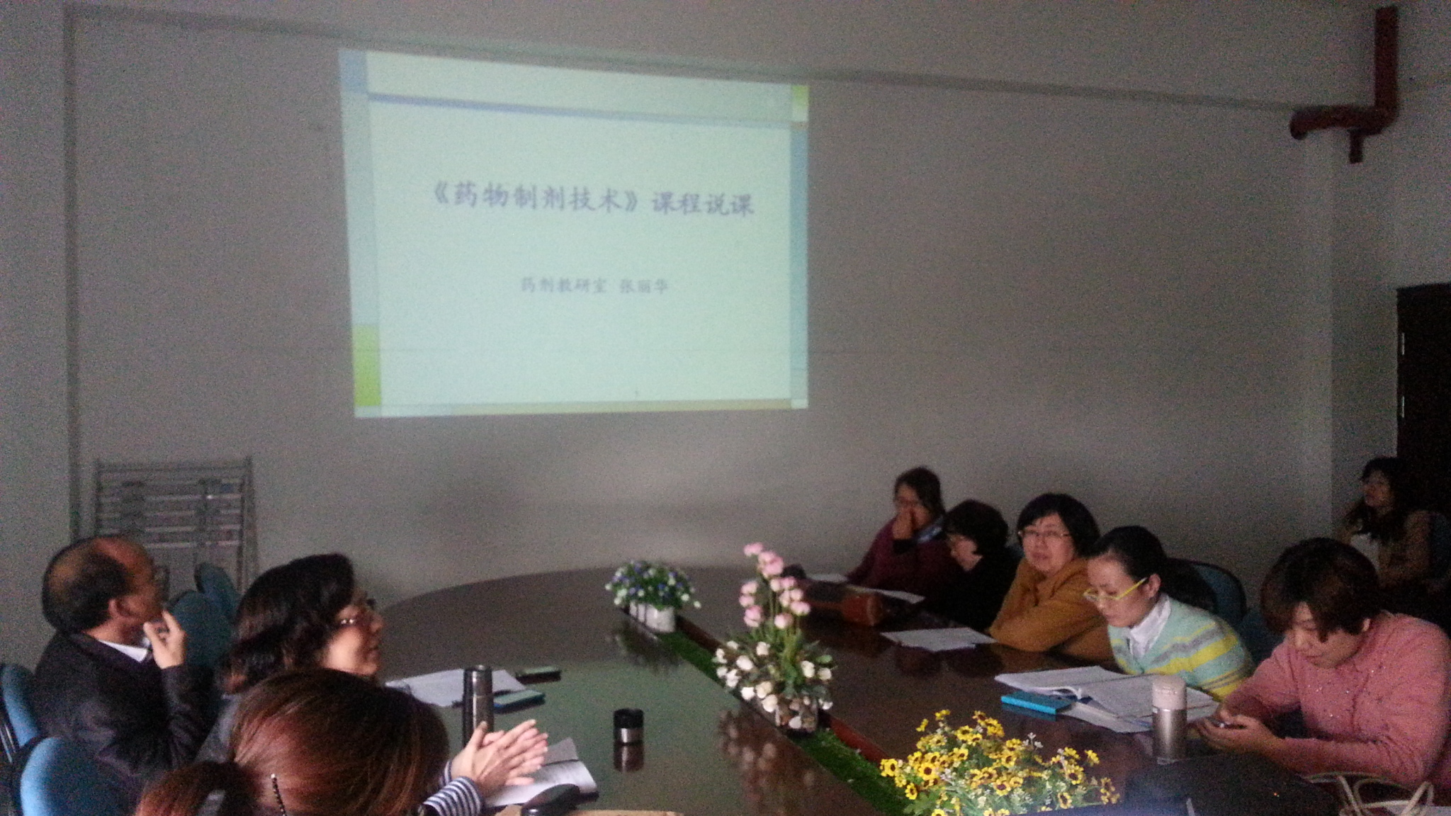 本次說課邀請邱麒、張麗華兩位老師,分別以《藥用植物學(xué)》、《藥物制劑技術(shù)》2門課程為示范,從課程簡介、課程目標(biāo)、課程設(shè)計的理念與思路、教學(xué)內(nèi)容選取與組織、教學(xué)手段與方法、師資隊伍與實訓(xùn)條件、學(xué)情分析及學(xué)習(xí)指導(dǎo)、課程思考與展望等幾大方面進行說課演示;同時,潘雪豐老師與全系教師分享了天津醫(yī)高專教務(wù)處制作的《課程設(shè)計與說課研討》課件,展示了天津醫(yī)高專對說課活動的理解與要求。