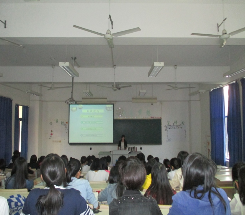 本次受邀前來參加培訓會的約有80位同學,在培訓會現(xiàn)場,指導老師針對大學生求職關注點,面試前準備、面試著裝、面試禮儀、自我介紹以及如何回答主考官問題等為同學們作了詳細解答。培訓會上,指導老師圖文并茂的解答,趣味靈活的面試技巧,使得同學們受益匪淺。同學們在聽老師講解時都紛紛做筆記,生怕遺漏了哪一個知識點。