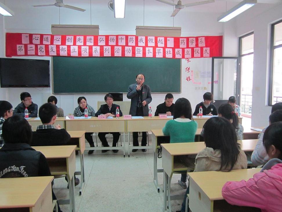 我系第二黨支部在本草社的籌建過程中給予了許多指導(dǎo)和幫助,做了大量具體細(xì)致的工作。大會開始后系團(tuán)總支書記王鈍銳老師首先代表系團(tuán)委對本草社籌建過程中付出辛勤勞動的老師和同學(xué)們表示感謝,并希望本草社能在系黨總支、團(tuán)委和指導(dǎo)老師的帶領(lǐng)下越辦越好,接著蘇愛華副書記宣布本草社正式成立,隨后系第二黨支部書記何舒瀾老師闡述了支部立項的意義及本草社的性質(zhì)和任務(wù),最后,本草社社長李明俊同學(xué)代表本草社發(fā)言。