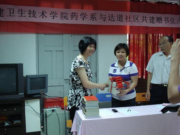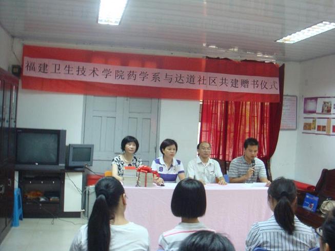 會上,首先由系黨總支蘇愛華副書記致辭,隨后,林小蘭書記與張秀斌主任分別代表學院和社區(qū)進行贈書及揭牌儀式。此次我系共向達道社區(qū)捐贈圖書900多冊及捐書款600多元,此次共建活動也拉開了我系團總支暑期“三下鄉(xiāng)”社會實踐活動的序幕,充分體現(xiàn)我系黨建帶團建工作的顯著效果,福州新聞網(wǎng)等媒體到現(xiàn)場進行報道。