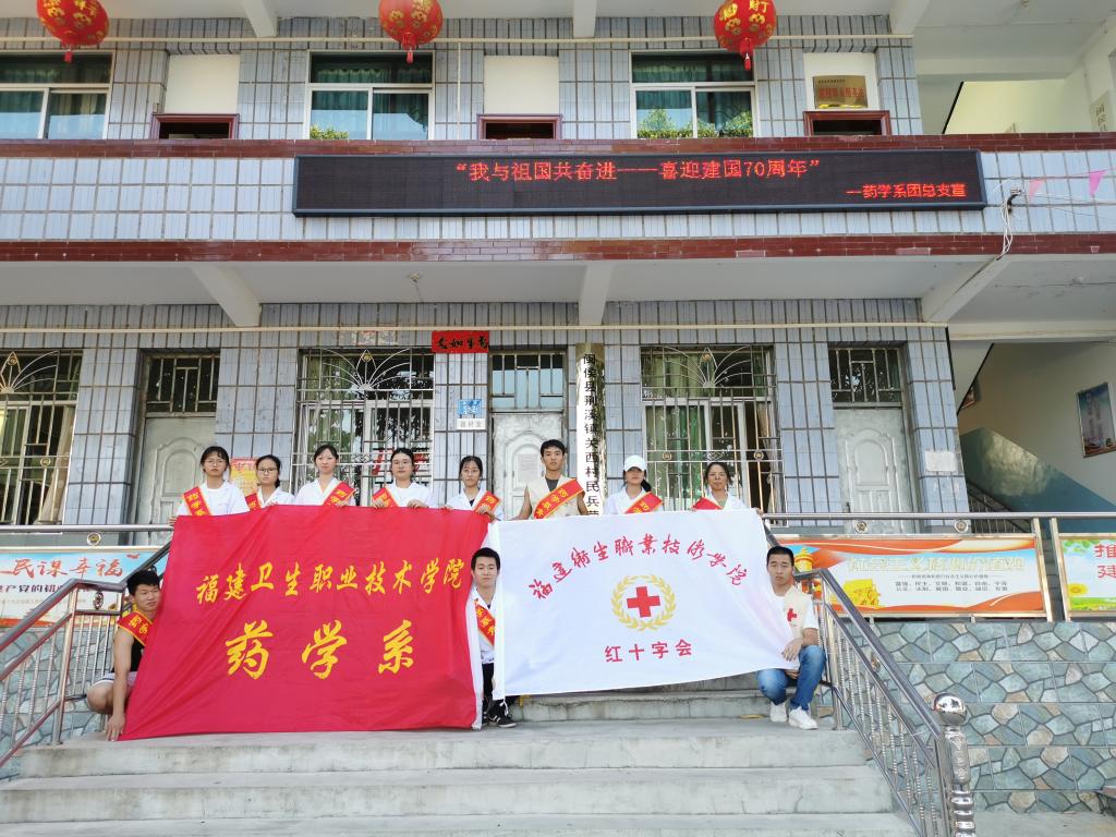 為慶祝中華人民共和國成立70周年,服務(wù)百姓、提高居民健康素養(yǎng),傳播健康理念,2019年9月19日,藥學(xué)系團(tuán)總支攜手院紅十字會(huì)赴閩侯縣關(guān)西村展開特別主題團(tuán)日活動(dòng)——“我與祖國共奮進(jìn)”。