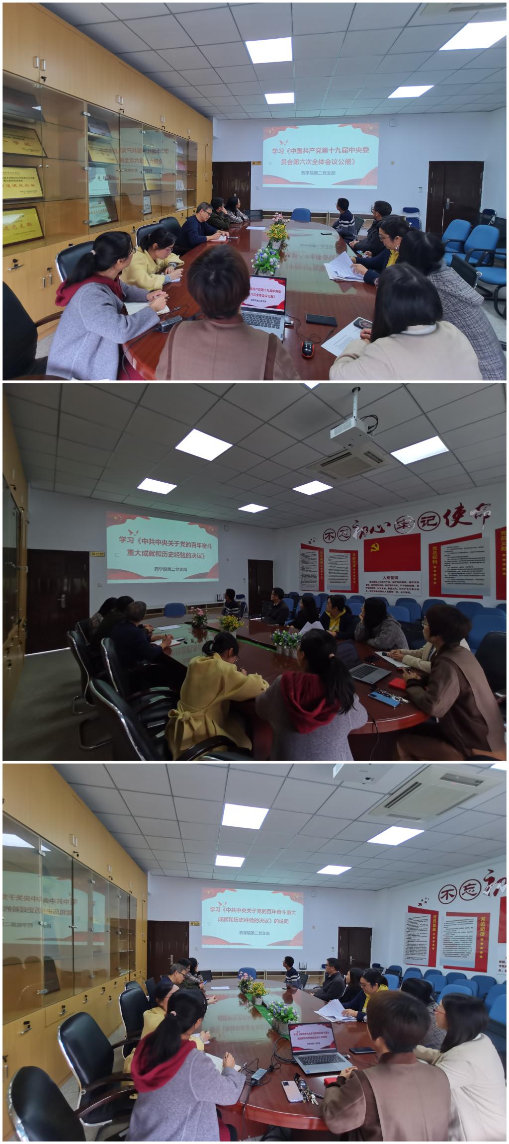 2021年11月18日,藥學(xué)院第二黨支部開展專題學(xué)習(xí),集中學(xué)習(xí)了《中國(guó)共產(chǎn)黨第十九屆中央委員會(huì)第六次全體會(huì)議公報(bào)》(以下簡(jiǎn)稱《公報(bào)》)、《中共中央關(guān)于黨的百年奮斗重大成就和歷史經(jīng)驗(yàn)的決議》(以下簡(jiǎn)稱《決議》)和《中共中央關(guān)于黨的百年奮斗重大成就和歷史經(jīng)驗(yàn)的決議》的說(shuō)明(以下簡(jiǎn)稱《說(shuō)明》)。本次專題學(xué)習(xí)由支部書記劉丹丹主持。