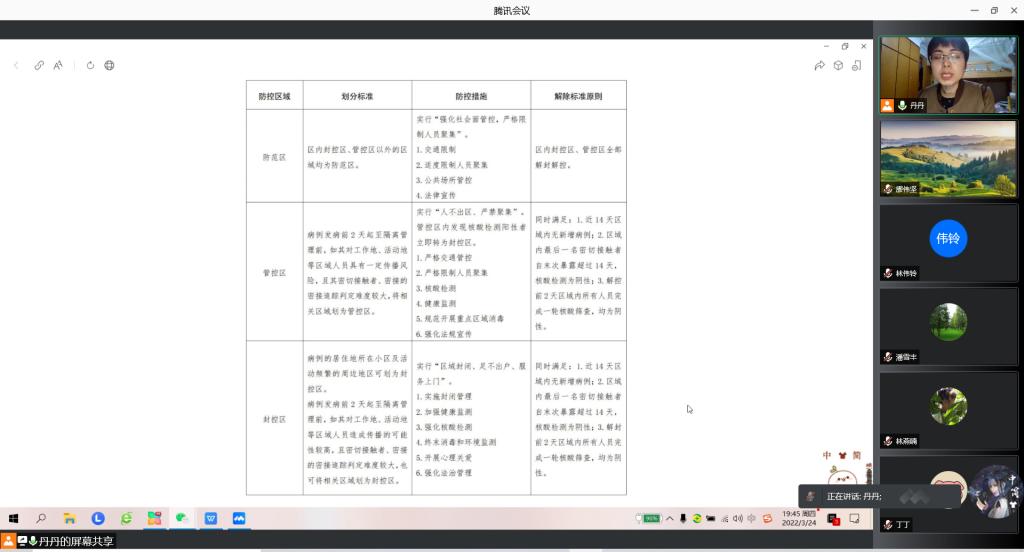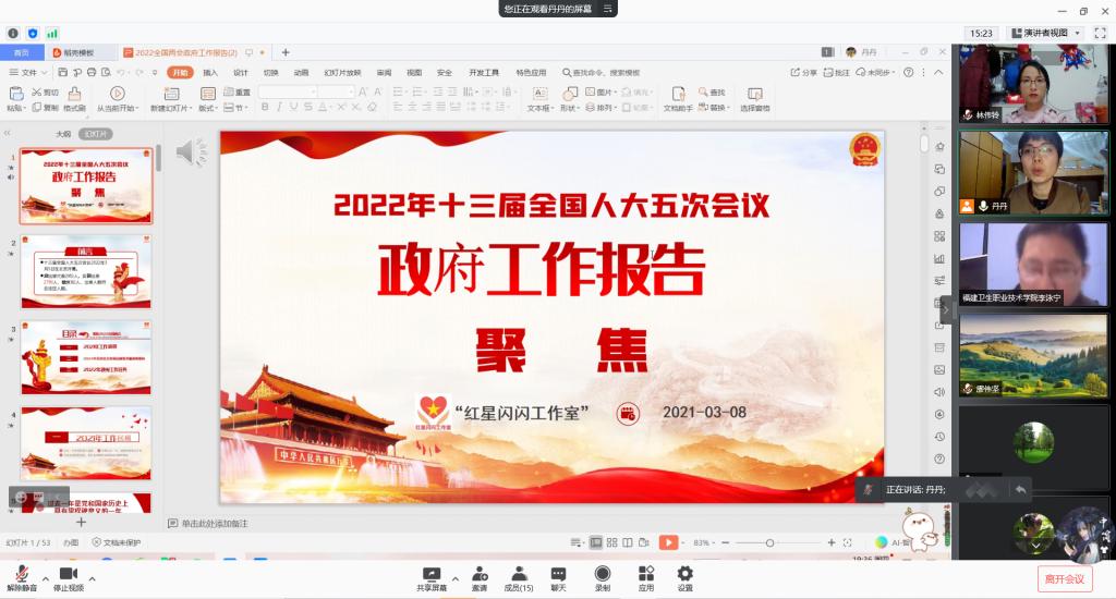 本次活動包含專題學習與防疫知識系列講座兩部分內容。在專題學習部分,劉丹丹帶領大家學習了2022年全國兩會政府工作報告的主要內容,傳達了兩會期間習近平總書記重要講話精神。劉丹丹強調,我們要更加緊密地團結在以習近平同志為核心的黨中央周圍,高舉中國特色社會主義偉大旗幟,以習近平新時代中國特色社會主義思想為指導,攻堅克難,砥礪奮進!接著,為了進一步貫徹落實省委、省政府新冠肺炎疫情防控工作部署,提高支部黨員科學有效解決疫情防控問題的能力,支部黨員在線上集體學習了《2022年新冠肺炎疫情防控知識手冊》。