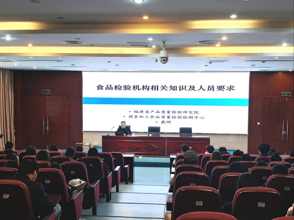 福建省產(chǎn)品質(zhì)量檢驗研究院食品檢驗研究所副所長戴明為藥學(xué)院師生開展了以“食品檢測人員基本職業(yè)素養(yǎng)與要求”的專題講座,介紹了食品檢測人員基本職業(yè)素養(yǎng)與要求,包括職業(yè)道德、職業(yè)能力,檢驗人員需要掌握的法律、法規(guī)、規(guī)章及規(guī)范性文件、標(biāo)準(zhǔn),應(yīng)該具備的實驗知識與實驗技能,同時還介紹目前食品檢驗機(jī)構(gòu)的發(fā)展現(xiàn)狀等,讓同學(xué)們更加深入地認(rèn)識到食品檢驗機(jī)構(gòu)的發(fā)展現(xiàn)狀及其對專業(yè)人才的要求。