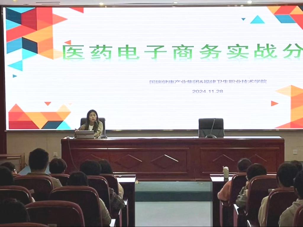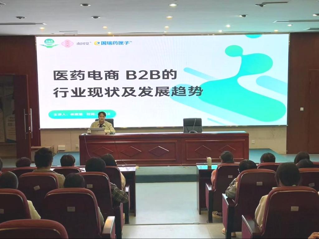 福建國瑞藥業(yè)有限公司集團(tuán)銷售事業(yè)部總經(jīng)理林建煜、人資行政總監(jiān)許雨珊、商品部總監(jiān)劉希婷、銷售部總監(jiān)鄭凌楓來校為藥學(xué)院師生開展了“醫(yī)藥電商的運(yùn)營模式和職業(yè)成長路徑”的專題講座。4位管理者分別講授了企業(yè)組織架構(gòu)、醫(yī)藥電商B2B的行業(yè)現(xiàn)狀及發(fā)展趨勢、C端醫(yī)藥電商市場現(xiàn)狀分析、商品部在企業(yè)中的作用與價值,為學(xué)生未來的醫(yī)藥電商職業(yè)發(fā)展奠基堅實的基礎(chǔ)。
