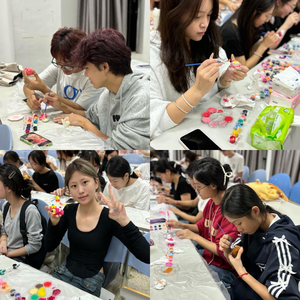 同學(xué)們將親手挑選的可愛石膏娃娃,拿起畫筆用五彩斑斕的顏色,盡情揮灑自己的想象力與創(chuàng)造力。在繪畫的過程中暫時忘卻學(xué)習(xí)與生活的煩惱,讓心靈隨著色彩的流動而自由飛翔。石膏娃娃不僅是親手創(chuàng)作的藝術(shù)品,更是心靈解壓的見證者。