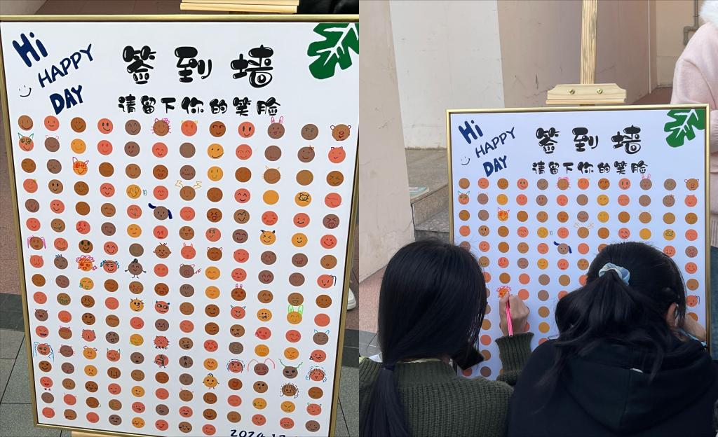 活動現(xiàn)場,同學(xué)們正用畫筆描繪屬于自己的燦爛笑臉。這面由200多位同學(xué)共同創(chuàng)作的簽到墻,見證了大學(xué)生的情緒多彩與青春活力。