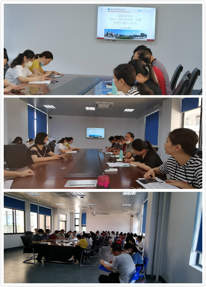 2020年6月4日下午,臨床醫(yī)學(xué)系全體教職工集中實(shí)訓(xùn)樓310,學(xué)習(xí)《關(guān)于加強(qiáng)和改進(jìn)新時(shí)代師德師風(fēng)建設(shè)的意見(jiàn)》及《新時(shí)代高等學(xué)校思想政治理論課教師隊(duì)伍建設(shè)規(guī)定》。