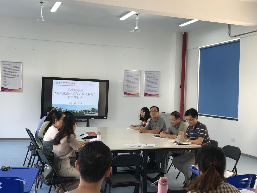 為進(jìn)一步深化課程思政改革,強(qiáng)化教師隊(duì)伍建設(shè),2019年10月10日下午臨床醫(yī)學(xué)系在實(shí)訓(xùn)樓401室召開(kāi)以“春風(fēng)化雨-課程思政之我見(jiàn)”為主題的專題研討會(huì),臨床醫(yī)學(xué)系全體教師參與此次專題研討會(huì)。