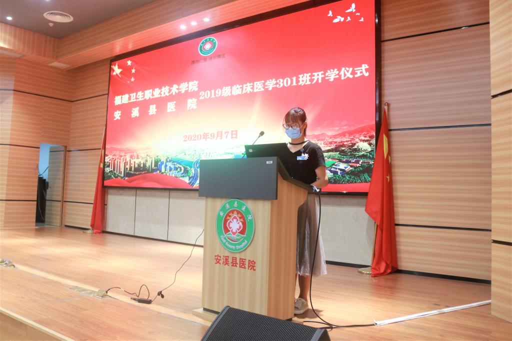 鐘露同學(xué)代表全體學(xué)生發(fā)言,表示將嚴(yán)格自律、勤思敏行,向醫(yī)院的優(yōu)秀老師們學(xué)習(xí),加快成長(zhǎng)速度,早日成為一名合格的白衣戰(zhàn)士。