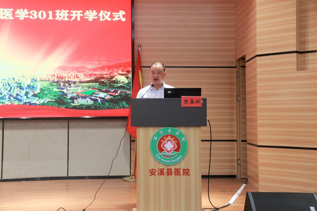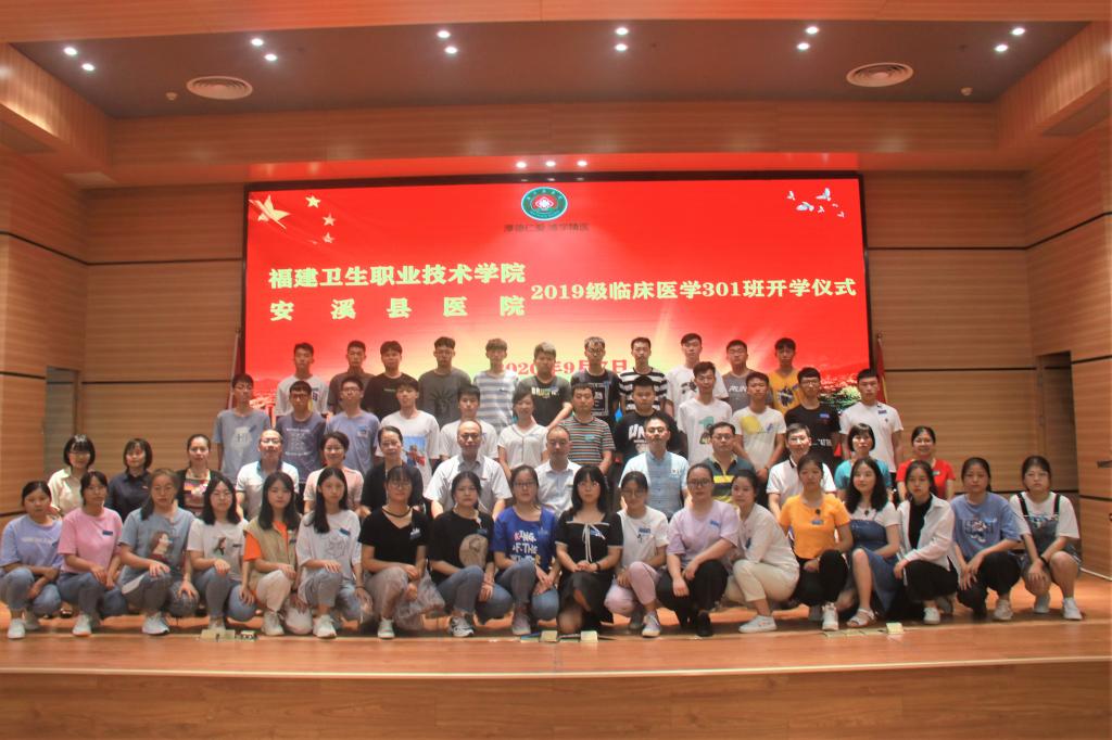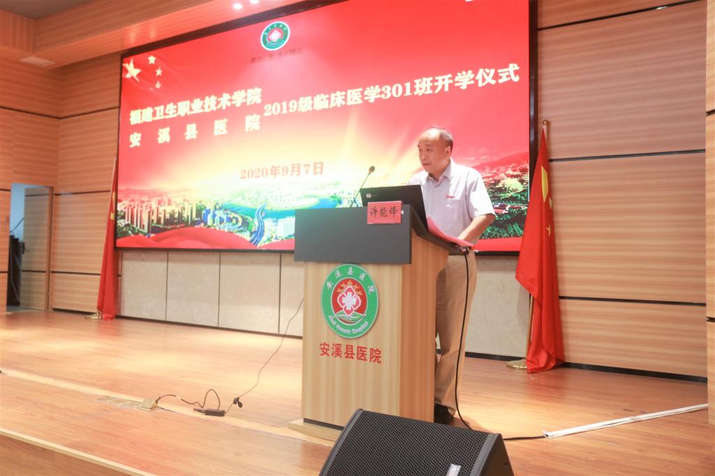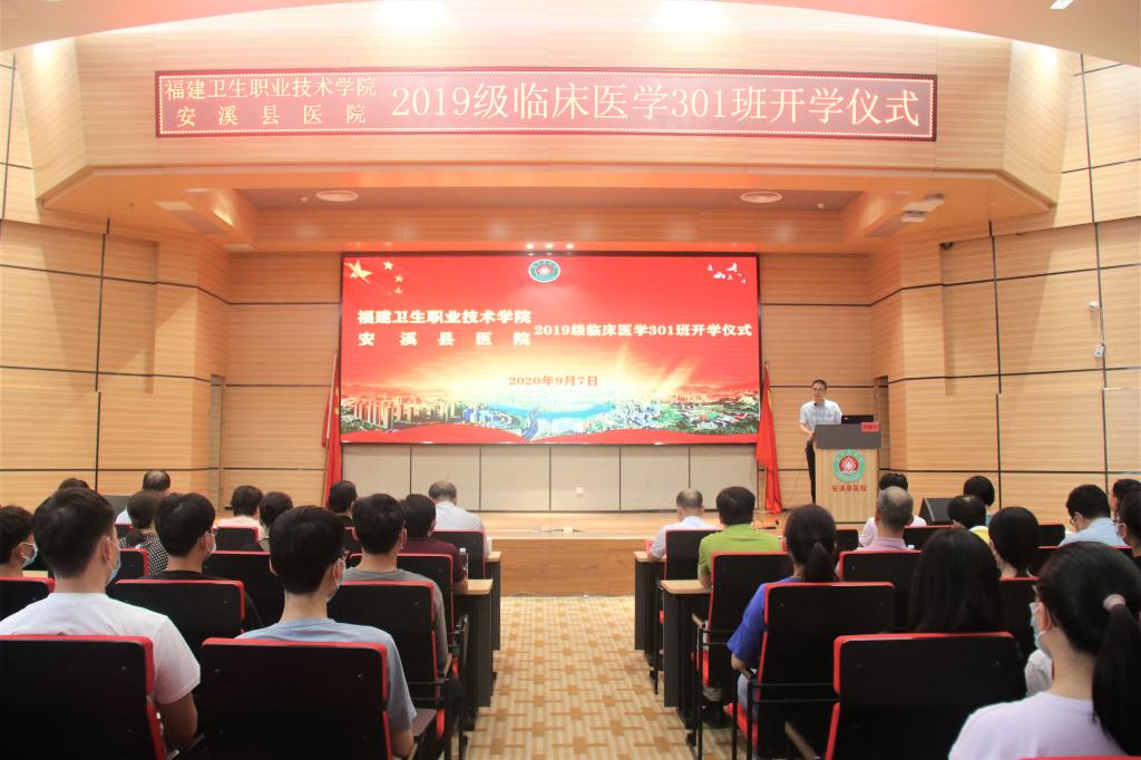 2020年9月7日,我系2019級(jí)臨床醫(yī)學(xué)301班在安溪縣醫(yī)院多功能廳舉行校企合作班的開(kāi)班儀式,這是我院首次與安溪縣醫(yī)院開(kāi)展的院校合作。我院院長(zhǎng)許能鋒、副院長(zhǎng)鄭翠紅、教務(wù)處處長(zhǎng)朱扶蓉、臨床系主任郭禮堅(jiān)、教務(wù)處副處長(zhǎng)梁艷,安溪縣醫(yī)院陳鑫壇院長(zhǎng)、相關(guān)職能科室負(fù)責(zé)人及2019級(jí)臨床301班學(xué)生參加。開(kāi)班儀式由安溪縣醫(yī)院副院長(zhǎng)劉朝陽(yáng)主持。