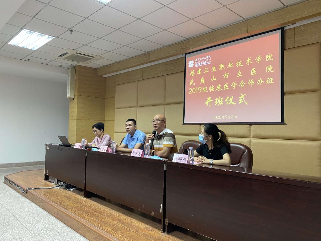2020年9月8日,我系與武夷山市立醫(yī)院聯(lián)合開(kāi)辦的2019級(jí)臨床醫(yī)學(xué)(定向基層醫(yī)療機(jī)構(gòu))專(zhuān)業(yè)校企合作班在武夷山市立醫(yī)院舉行了開(kāi)班儀式。武夷山市立醫(yī)院保健部部長(zhǎng)陳智遠(yuǎn)、科教科科長(zhǎng)陳蕓、合作班班主任劉香婕以及我系邱滾忠副書(shū)記、輔導(dǎo)員童輝燕、定向班26位同學(xué)出席了開(kāi)班儀式,開(kāi)班儀式由武夷山市立醫(yī)院陳蕓科長(zhǎng)主持。
