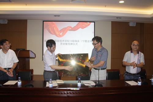 9月7日上午,福建衛(wèi)生職業(yè)技術(shù)學(xué)院、寧德市醫(yī)院2014級(jí)臨床醫(yī)學(xué)(定向基層醫(yī)療機(jī)構(gòu))專業(yè)校企合作班開班暨授牌儀式在寧德市醫(yī)院新區(qū)舉行。寧德市醫(yī)院陳子春院長、焦維克副院長、寧德市醫(yī)院腎內(nèi)科副主任李大勇醫(yī)師,教學(xué)班副主任胡廷輝醫(yī)師、教學(xué)班干事朱晶晶老師和我院廖偉堅(jiān)副院長、教務(wù)處梁艷老師、臨床醫(yī)學(xué)系邱滾忠書記、主任助理林浩老師、輔導(dǎo)員吳涵梅老師以及臨床定向班51位同學(xué)出席了開班儀式,開班儀式由寧德市醫(yī)院副院長焦維克主持。