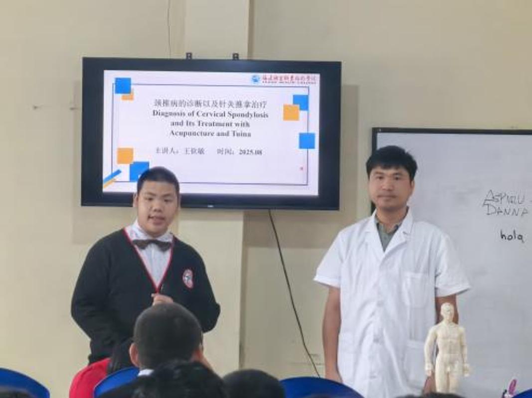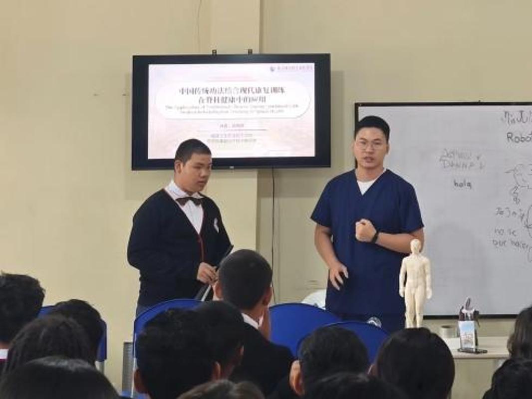 “厄瓜多爾海絲學(xué)院”以中醫(yī)藥專業(yè)群為核心,開設(shè)中醫(yī)康復(fù)技術(shù)、現(xiàn)代康復(fù)技術(shù)、針灸推拿、中醫(yī)學(xué)、中藥學(xué)等特色專業(yè),構(gòu)建起覆蓋“預(yù)防—治療—康復(fù)—產(chǎn)品開發(fā)”一體化健康服務(wù)專業(yè)體系。揭牌儀式同期,福建衛(wèi)生職業(yè)技術(shù)學(xué)院教師團(tuán)隊(duì)圍繞中醫(yī)基礎(chǔ)理論、中藥應(yīng)用、針灸推拿實(shí)操、傳統(tǒng)養(yǎng)生功法、現(xiàn)代康復(fù)技術(shù)等主題舉辦講座,并面向當(dāng)?shù)貛熒搬t(yī)療從業(yè)者開展職業(yè)技能培訓(xùn)。
