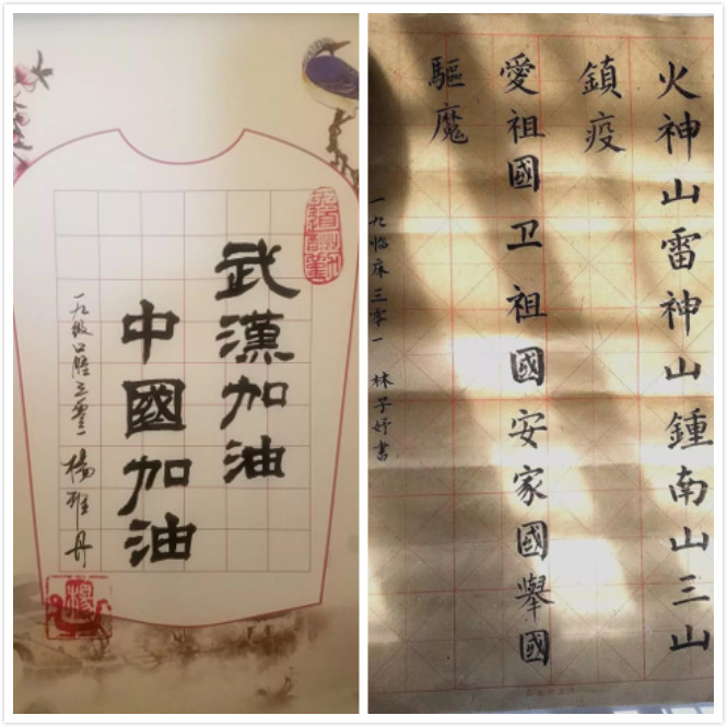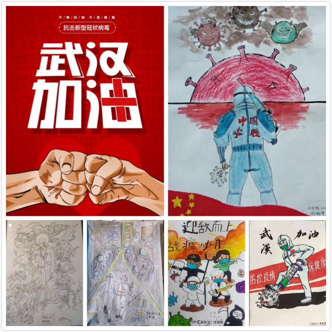 在這次疫情中,我們看到了什么是大愛,什么是奉獻,感受到了何為責任和擔當。同學們也將他們的身影融入了一幅幅畫作和書法作品中,用繽紛的色彩和筆鋒的溫度寄托祝福與希望,用特別的方式為他們加油!