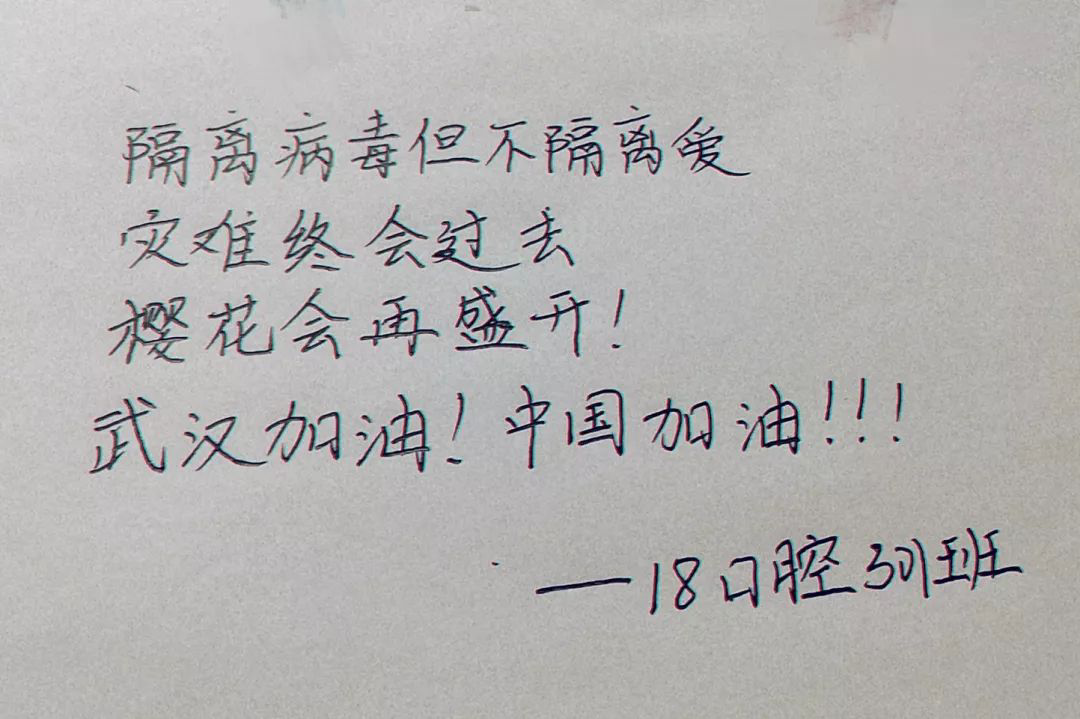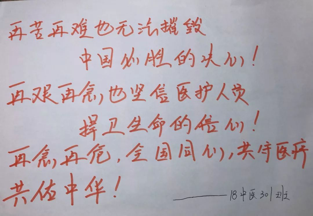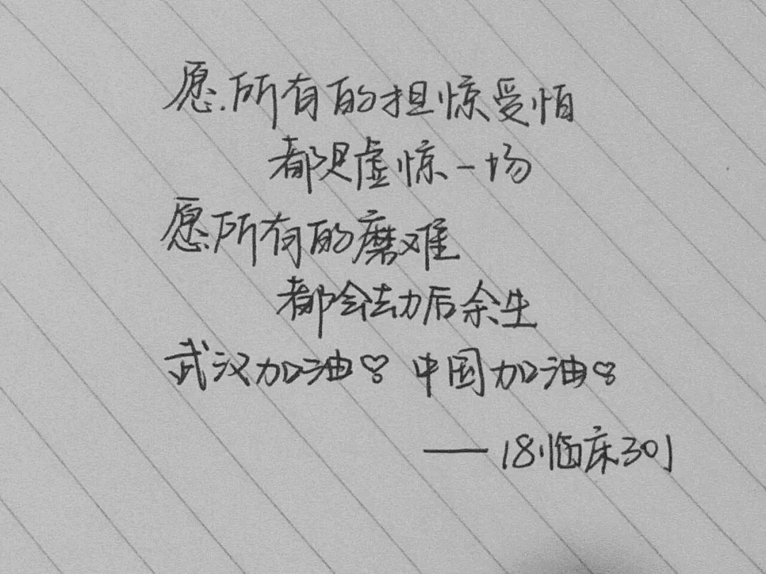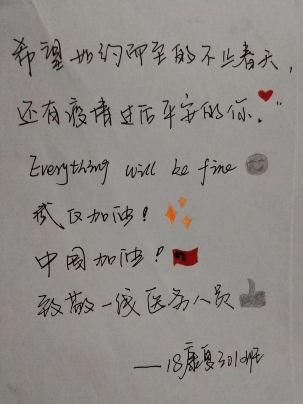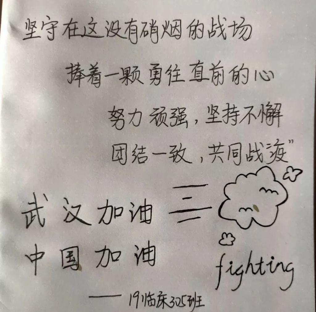 面對(duì)疫情我們眾志成城。冬將盡,春可期。山河無(wú)恙,世間皆安。在我系團(tuán)總支的組織下,我們身在各地的臨床學(xué)子們共同參與寫下了一句句滿滿的加油和祝福語(yǔ)。