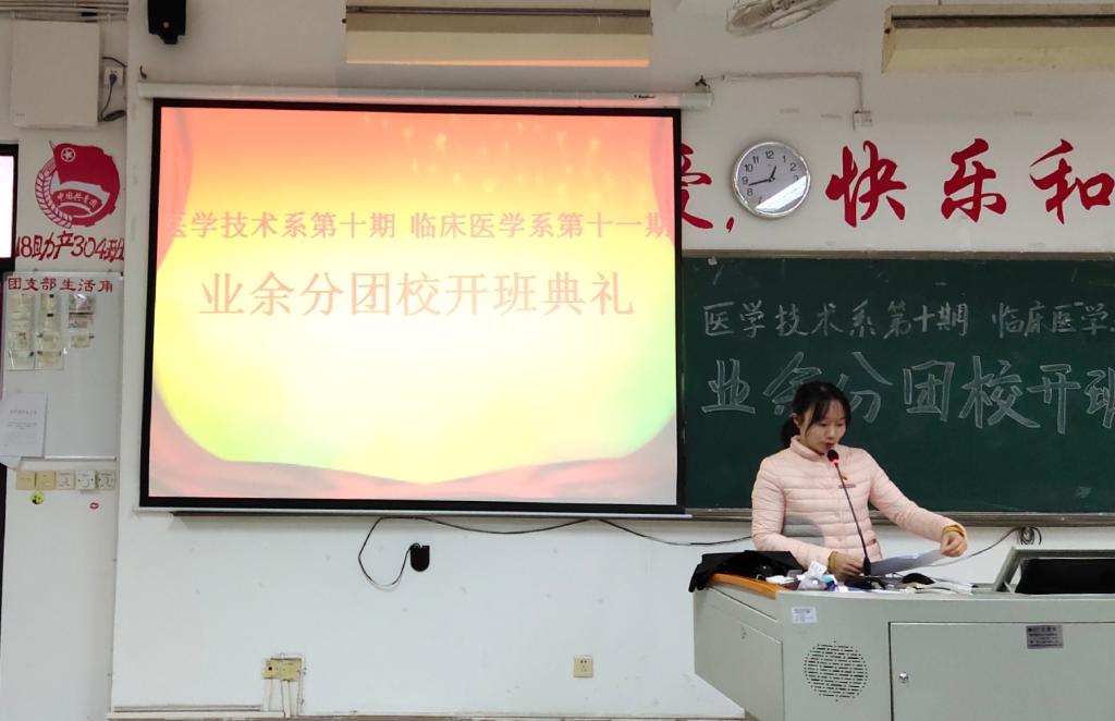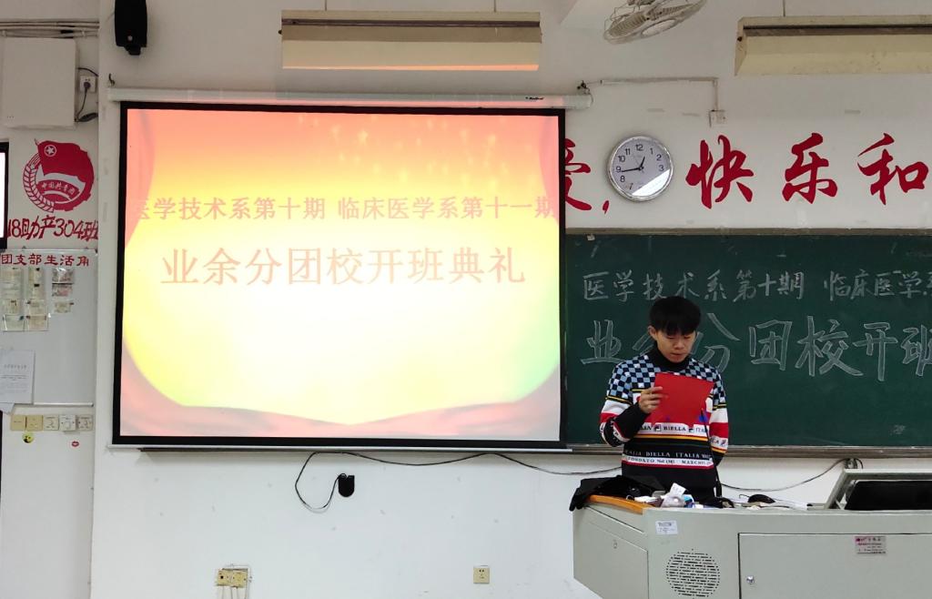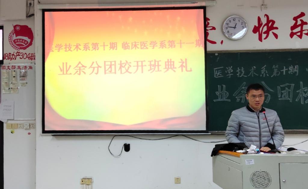 為提高團組織的凝聚力和戰(zhàn)斗力,做好我系學(xué)生團員的發(fā)展工作。臨床醫(yī)學(xué)系第十一期業(yè)余分團校于12月20日中午在教學(xué)樓210舉行開班儀式。我系黨總支負責人陳俊穎副書記、陳潔副書記、醫(yī)學(xué)技術(shù)系黨總支負責人邱滾忠副書記、兩系團總支書記、副書記和輔導(dǎo)員老師們,以及兩系各委員及業(yè)余分團校的所有學(xué)員共同出席、參加了開班儀式。