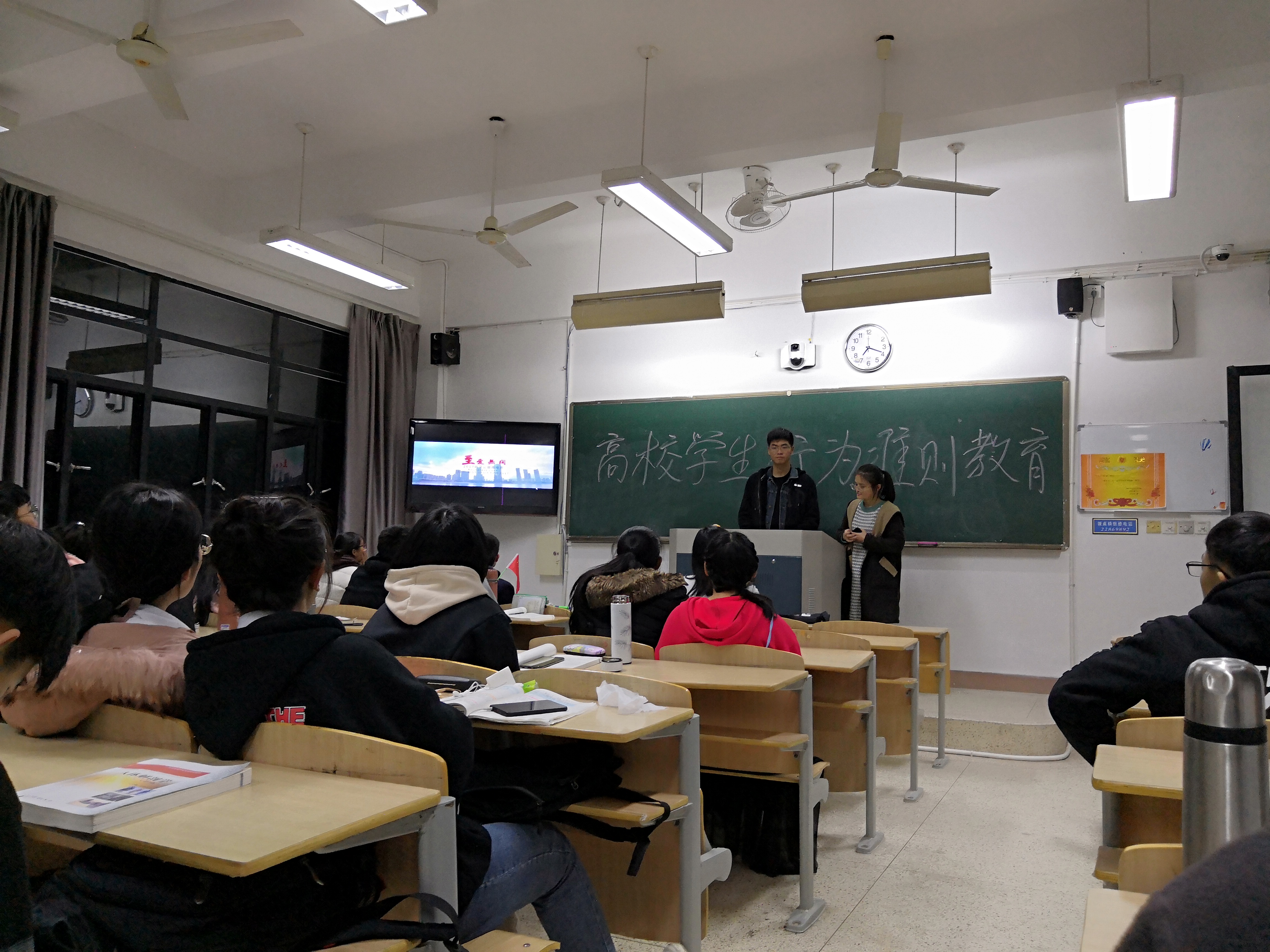 大學(xué)是學(xué)生形成正確價(jià)值觀、人生觀和世界觀的關(guān)鍵時(shí)期,通過(guò)開(kāi)展學(xué)習(xí)《高等學(xué)校學(xué)生行為準(zhǔn)則》主題班會(huì),引導(dǎo)學(xué)生們?cè)谌粘W(xué)習(xí)、生活中規(guī)范自身行為,努力成為一名合格的高等院校學(xué)生,努力做合格的社會(huì)主義的建設(shè)者和接班人。