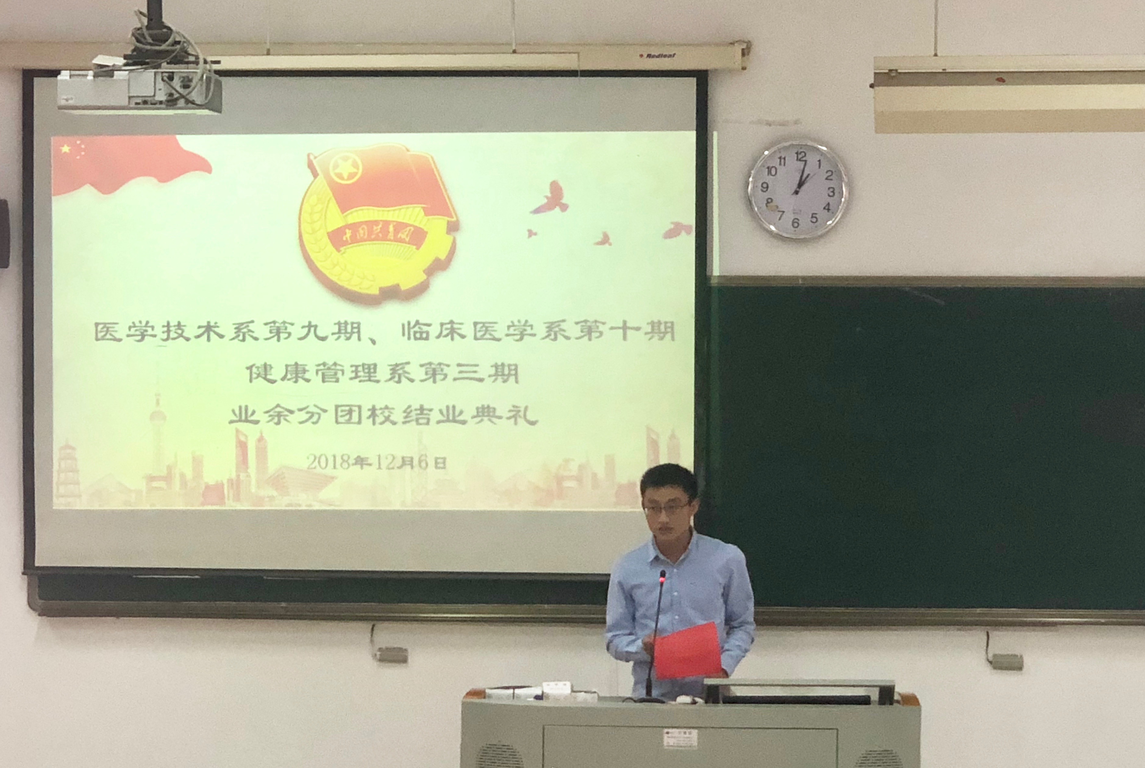12月6日,臨床醫(yī)學(xué)系第十期、醫(yī)學(xué)技術(shù)系第九期、健康管理系第三期業(yè)余分團(tuán)校結(jié)業(yè)典禮在教學(xué)樓210教室。臨床醫(yī)學(xué)系團(tuán)總支謝林輝副書(shū)記;醫(yī)學(xué)技術(shù)系團(tuán)總支黃玲云書(shū)記、輔導(dǎo)員陳念文老師;健康管理系團(tuán)總支邱麟書(shū)記、輔導(dǎo)員趙茜老師出席此次團(tuán)校結(jié)業(yè)典禮。