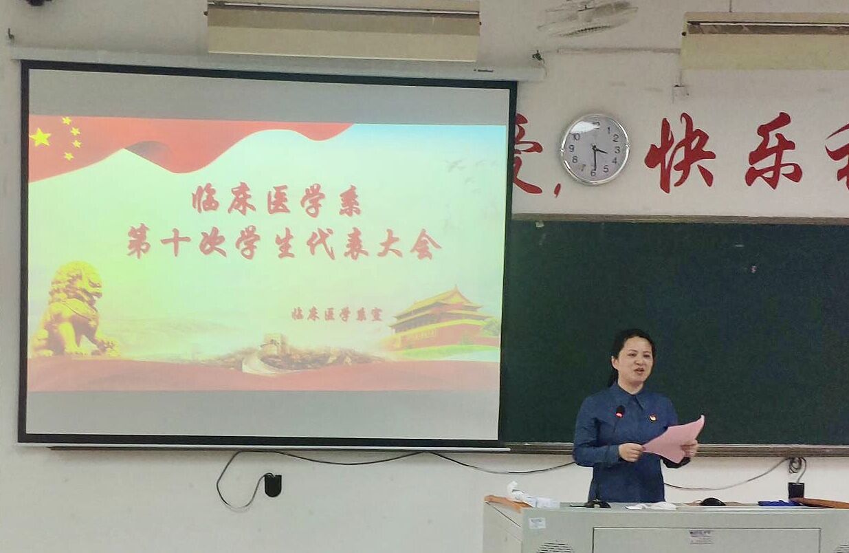 為認(rèn)真總結(jié)我系學(xué)生會(huì)在這一年以來(lái)的工作,確立今后的工作任務(wù)和奮斗目標(biāo),同時(shí)選舉產(chǎn)生新一屆的臨床系學(xué)生會(huì)主席團(tuán)成員。我系于2019年3月21日在教學(xué)樓210教室舉行臨床醫(yī)學(xué)系第十次學(xué)生代表大會(huì)。臨床醫(yī)學(xué)系黨總支陳俊穎副書(shū)記、團(tuán)總支書(shū)記葉家濤書(shū)記、團(tuán)總支謝林輝副書(shū)記、我系各輔導(dǎo)員們兩委會(huì)成員以及各班級(jí)代表參加了此次大會(huì)。