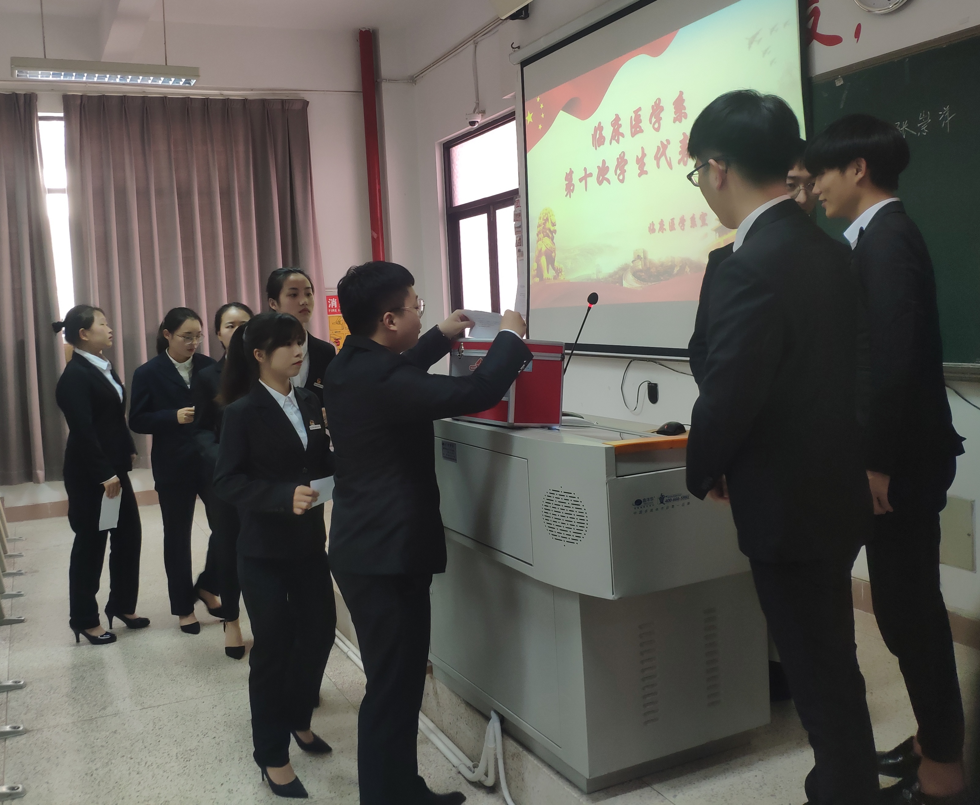 大會(huì)的第二階段,臨床醫(yī)學(xué)系第九屆學(xué)生會(huì)主席史嘉輝同學(xué)及副主席張灝楠同學(xué)分別就在任期間的工作總結(jié)匯報(bào)并對(duì)下一屆學(xué)生會(huì)提出建議與希望。與會(huì)代表以無(wú)記名投票的方式,選舉產(chǎn)生了臨床醫(yī)學(xué)系第十屆學(xué)生會(huì)主席邱鑫宇和副主席齊淑煒同學(xué)。