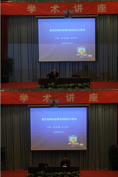 講座在一片熱烈的掌聲開(kāi)始,鄭鳴教授精辟的分析并深入探討講講授如何培養(yǎng)學(xué)生創(chuàng)新素質(zhì)和創(chuàng)業(yè)能力以適應(yīng)社會(huì)競(jìng)爭(zhēng)需求,如何培養(yǎng)學(xué)生創(chuàng)新素質(zhì)創(chuàng)業(yè)和創(chuàng)業(yè)能力的全程化、系統(tǒng)化成了高等教育工作者所探索、研究胡問(wèn)題。在具體的學(xué)生管理實(shí)踐中,通過(guò)對(duì)創(chuàng)新創(chuàng)業(yè)教育平臺(tái)的搭建,創(chuàng)新教育課改革,以及創(chuàng)業(yè)能力的培養(yǎng)等問(wèn)題的研究,來(lái)探索建立一套科學(xué)、有效、便于操作的學(xué)生創(chuàng)新創(chuàng)業(yè)培養(yǎng)體系,以鼓勵(lì)學(xué)生學(xué)以致用、用有所成,進(jìn)而提升學(xué)生理論付諸于實(shí)踐能力當(dāng)中。