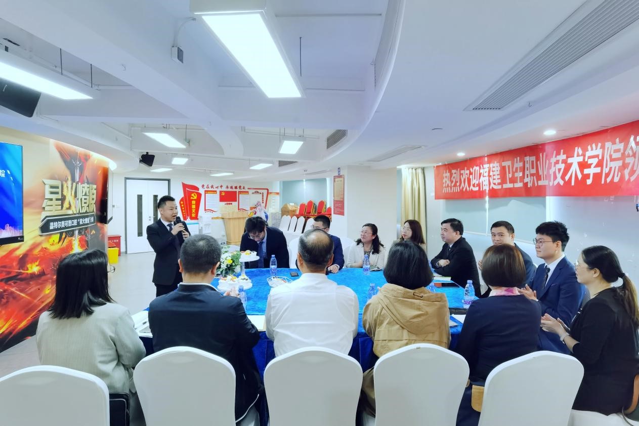 2022年5月19日,校長許能鋒、學(xué)生工作部副部長董東、醫(yī)學(xué)院副院長鄧元榮等一行6人先后前往福建晶特爾美可普有限公司、福州市同福醫(yī)醫(yī)療投資有限公司開展校企合作洽談。