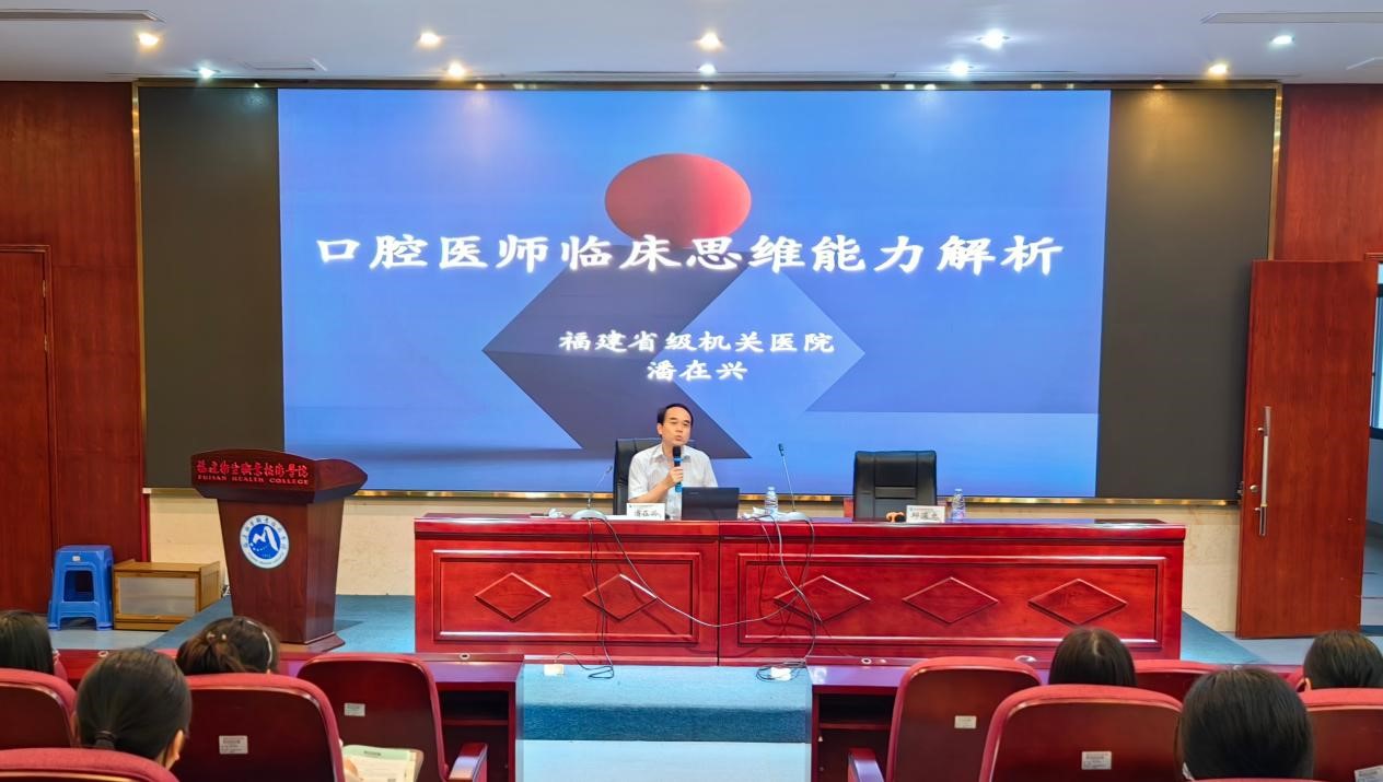 為提升學(xué)??谇粚?zhuān)業(yè)人才培養(yǎng)質(zhì)量,提高專(zhuān)業(yè)能力建設(shè),5月21日晚,應(yīng)醫(yī)學(xué)院邀請(qǐng),原福建省級(jí)機(jī)關(guān)醫(yī)院副院長(zhǎng)、國(guó)際牙科醫(yī)師學(xué)院院士(ICD)、福建省口腔質(zhì)量控制中心副主任潘在興教授為即將畢業(yè)的2020級(jí)口腔醫(yī)學(xué)專(zhuān)業(yè)學(xué)生進(jìn)行了《口腔醫(yī)師臨床思辨能力解析》專(zhuān)題講座。會(huì)上,醫(yī)學(xué)院黨總支書(shū)記邱滾忠親切地為師生介紹了潘在興教授,對(duì)潘在興教授能來(lái)我院為20級(jí)口腔醫(yī)學(xué)專(zhuān)業(yè)學(xué)生舉辦講座,并對(duì)學(xué)院口腔醫(yī)學(xué)專(zhuān)業(yè)的建設(shè)和發(fā)展給予悉心的指導(dǎo)表示感謝!