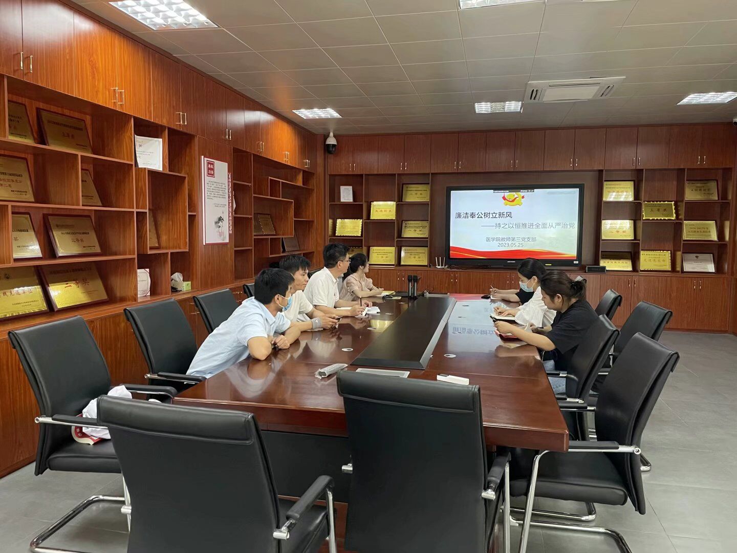 為持續(xù)深入開展黨風廉政建設,增強支部黨員廉潔自律意識,2023年5月23日,醫(yī)學院教師第三黨支部開展專題學習活動,本次專題學習圍繞“廉潔奉公樹立新風——持之以恒推進全面從嚴治黨”展開,由支部書記陳銘主持。