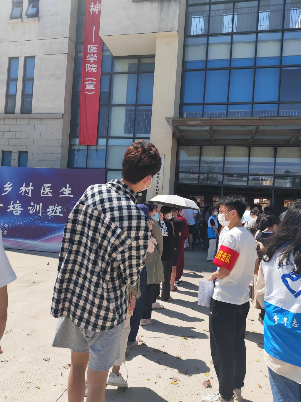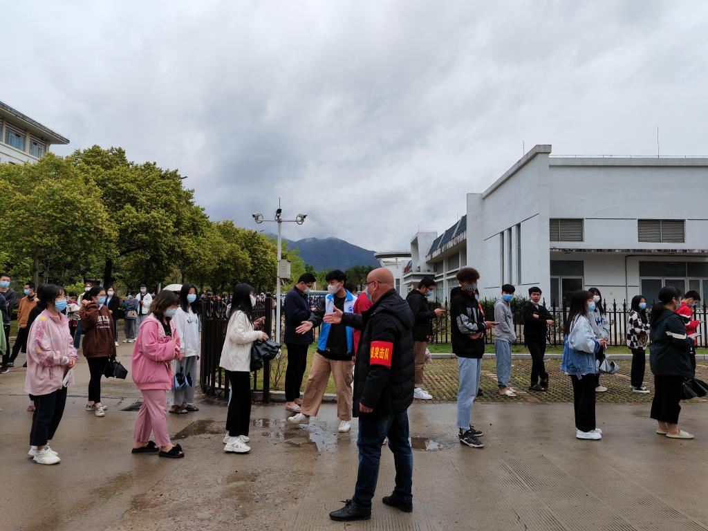 理論學(xué)習(xí)必須在實(shí)踐中得以印證。此輪疫情來(lái)勢(shì)洶洶,防控形勢(shì)十分嚴(yán)峻。支部黨員志愿助力核酸檢測(cè),彰顯責(zé)任擔(dān)當(dāng),中午時(shí)分,大家到門診部大廳便忙碌起來(lái),他們有的引導(dǎo)同學(xué)們有序排隊(duì),保持安全距離;有的協(xié)助排隊(duì)人員完成掃碼預(yù)約及采樣碼核驗(yàn)工作,確保應(yīng)檢人員全部完成。