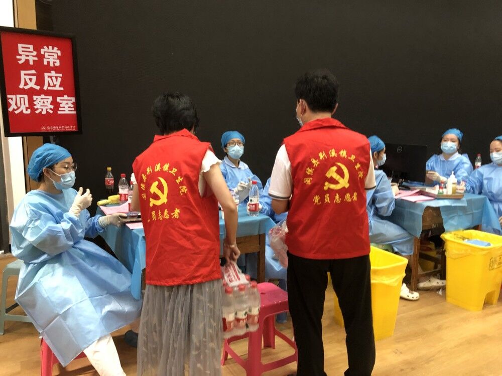 活動當(dāng)天,閩侯縣衛(wèi)健局協(xié)調(diào)聯(lián)合閩侯縣疾控中心、閩侯縣醫(yī)院、甘蔗鎮(zhèn)中心衛(wèi)生院、荊溪鎮(zhèn)衛(wèi)生院4家單位,選派55名工作人員進駐我校新冠疫苗接種點為師生集中接種第二劑新冠疫苗。當(dāng)日接種人數(shù)達6700名,疫情防控力量緊張。醫(yī)學(xué)系第一黨支部的黨員及入黨積極分子堅守在接種點的等待區(qū)、引導(dǎo)區(qū)、接種區(qū)、留觀區(qū),進行秩序維護、信息登記、線路指引等志愿服務(wù),讓接種工作健康有序地進行。志愿者們輪班上崗,堅持為師生服務(wù),忙碌的身影,成為了接種現(xiàn)場一道靚麗的風(fēng)景線。