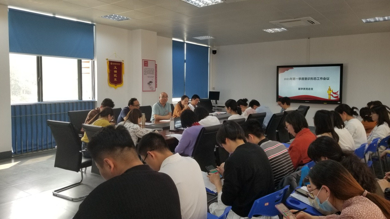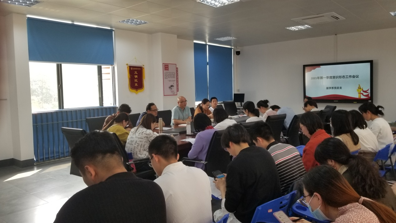 4月1日,醫(yī)學(xué)系黨總支在實訓(xùn)樓311會議室召開2021年第一季度意識形態(tài)工作專題會議。會議由系黨總支書記邱滾忠主持,黨總支各委員、各支部委員、教研室主任和全體輔導(dǎo)員參加了此次會議。