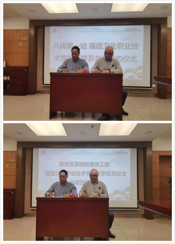 茶園街道黨工委書記陳乃勝、我系黨總支書記邱滾忠、副書記陳潔等代表共同參加了本次活動。雙方就志愿服務(wù)、教學(xué)實踐基地等共建事宜進行了磋商,本著“互聯(lián)互動、條塊結(jié)合、共建共享、優(yōu)勢互補”的原則,共同提升黨建科學(xué)化、規(guī)范化水平,共同擦亮“八閩第一站”這塊金字招牌。