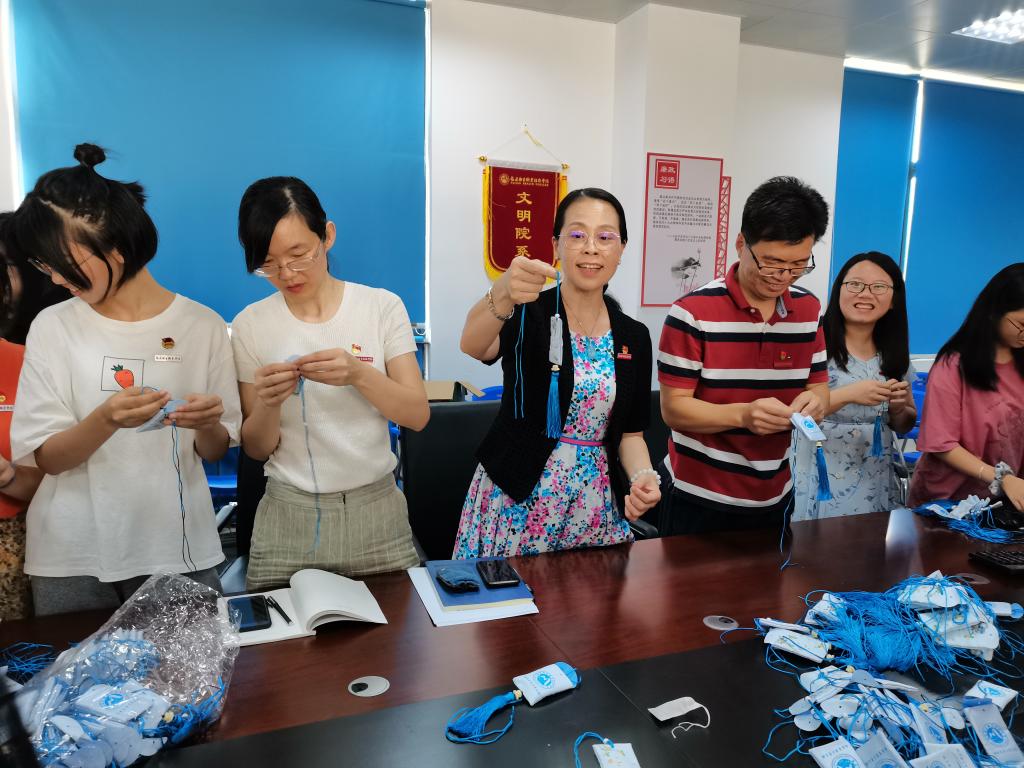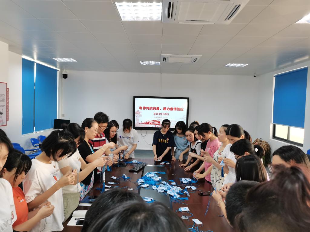 活動中,支部全體師生分工合作,有條不紊,制作了數(shù)百個具有“芳香辟穢、祛邪解毒”防疫效用藥囊,會議室彌漫著清新怡人的中藥香。