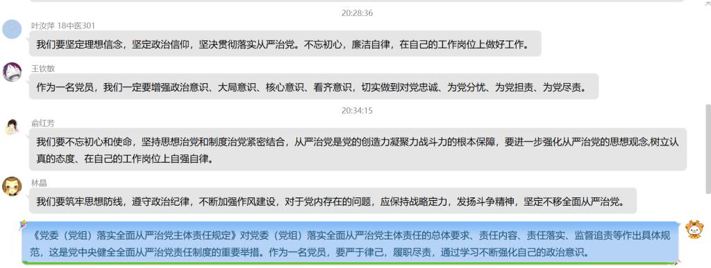 5月10日晚,臨床系第三黨支部于通過支部QQ群召開線上學(xué)習(xí)活動,此次學(xué)習(xí)內(nèi)容為《黨委(黨組)落實全面從嚴治黨主體責(zé)任規(guī)定》(以下簡稱《規(guī)定》),由支部書記陳銘同志主持。