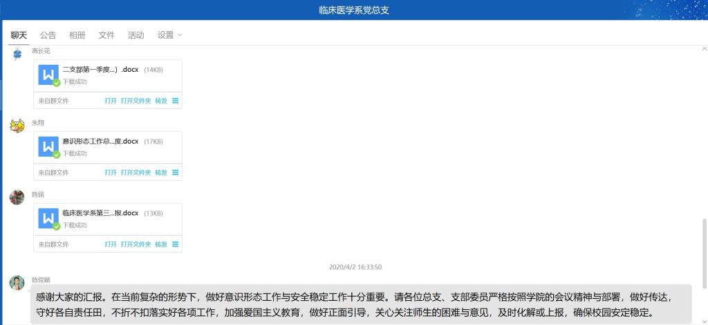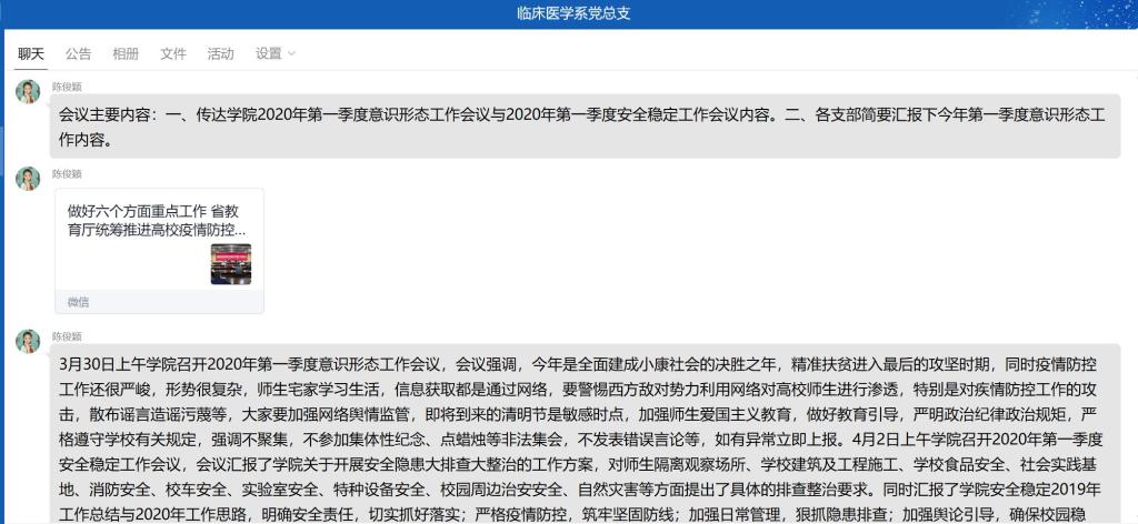 4月2日,臨床醫(yī)學(xué)系2020年第一季度意識形態(tài)及安全工作會議,同時4月份的黨支部書記例會于線上召開。系黨總支委員及支部書記參加會議,會議由黨總支負責(zé)人陳俊穎主持。