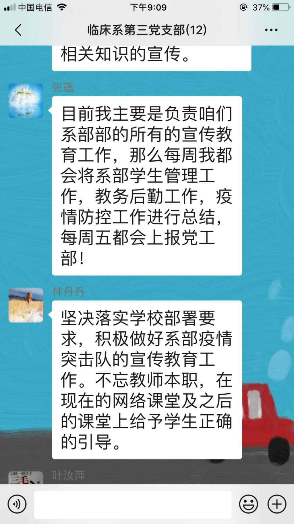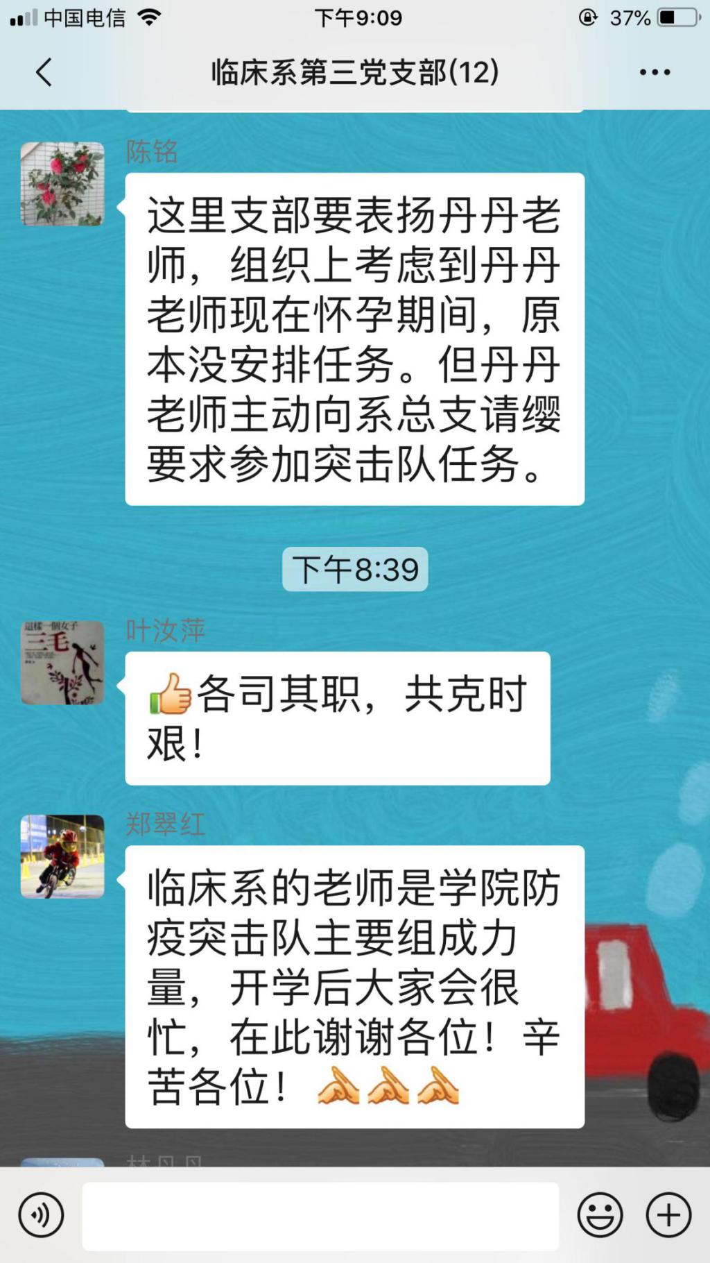 通過認真學(xué)習(xí),與會的黨員同志們紛紛表示,作為教師黨員也作為防疫突擊隊的成員,會密切關(guān)注疫情變化,關(guān)注學(xué)生動態(tài)及身體情況,對學(xué)生做好宣傳教育工作,積極投身于防疫工作中。同時,不忘教師本職,精心備課,利用網(wǎng)絡(luò)課堂教學(xué),做到“離校不離教、停課不停學(xué)”。鄭翠紅副校長還指出,臨床系老師是學(xué)院防疫突擊隊主要組成力量,讓我們同心聚力,打贏防疫阻擊戰(zhàn)!